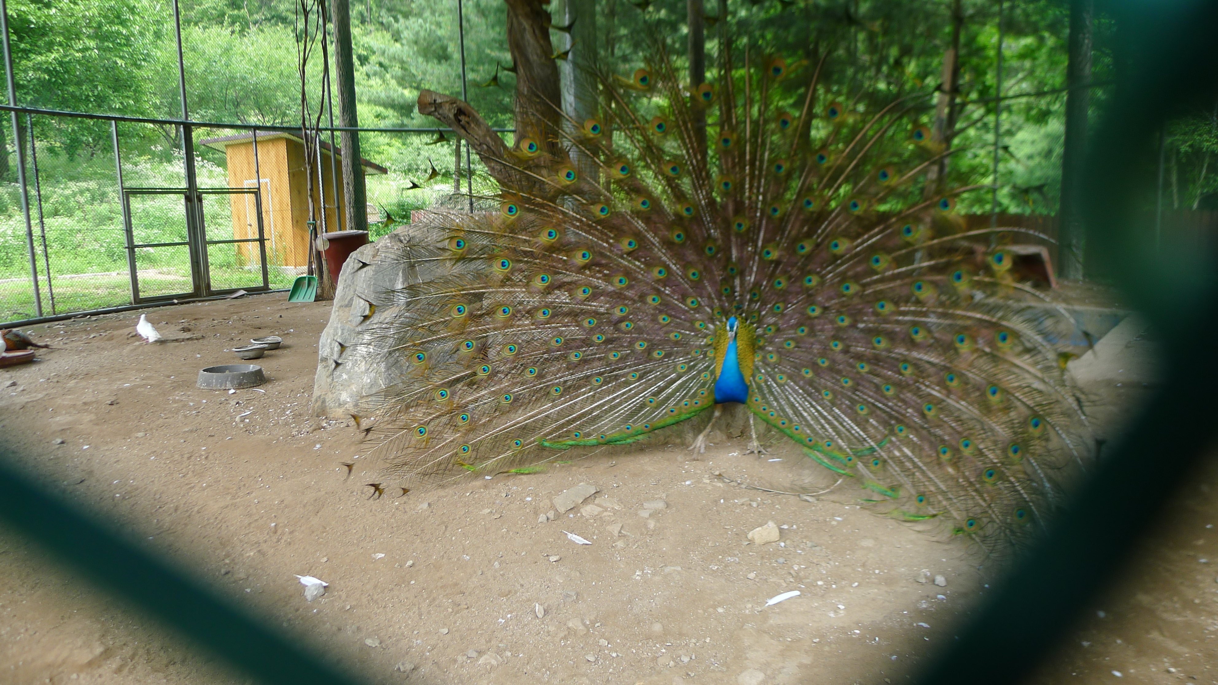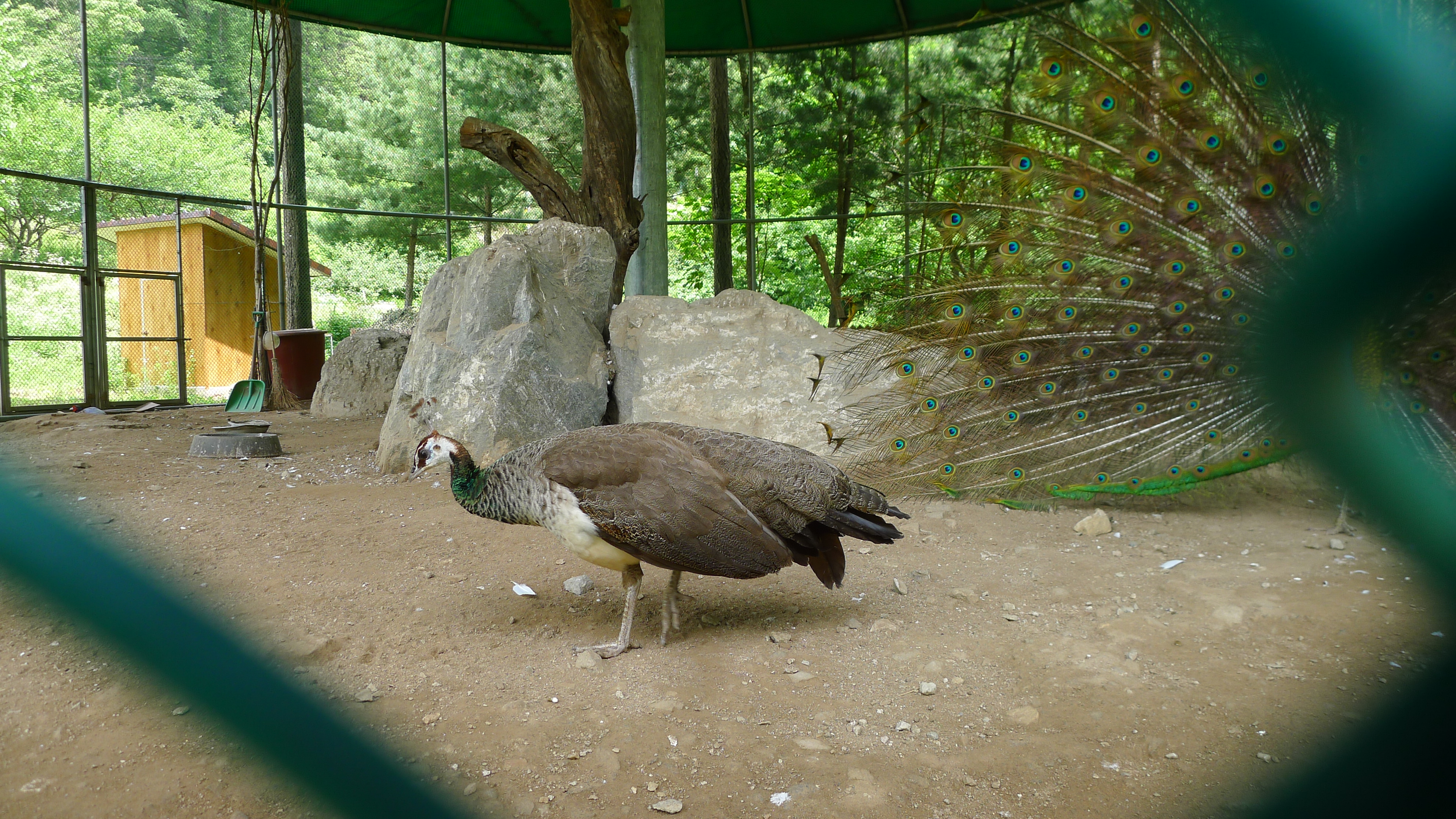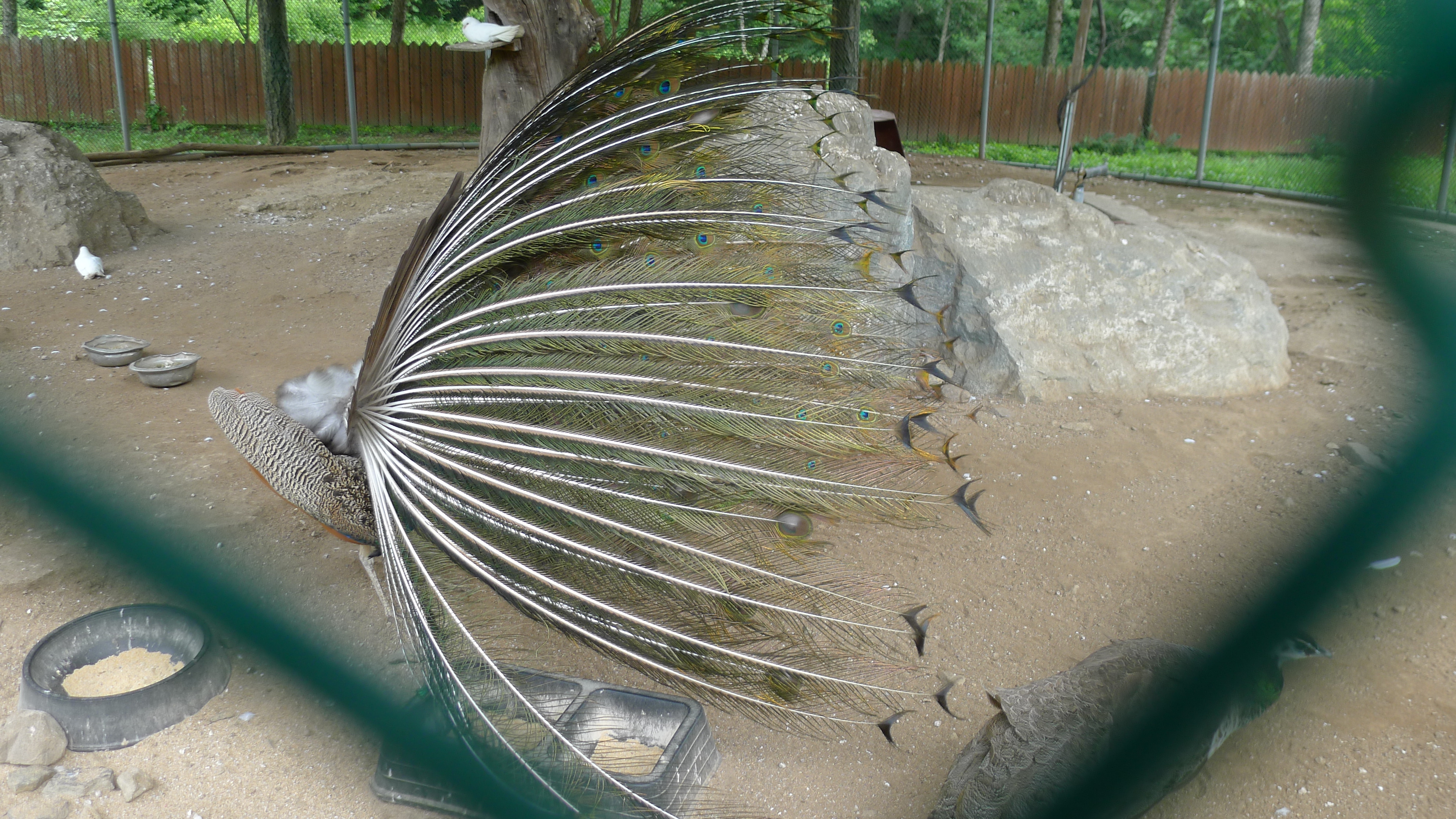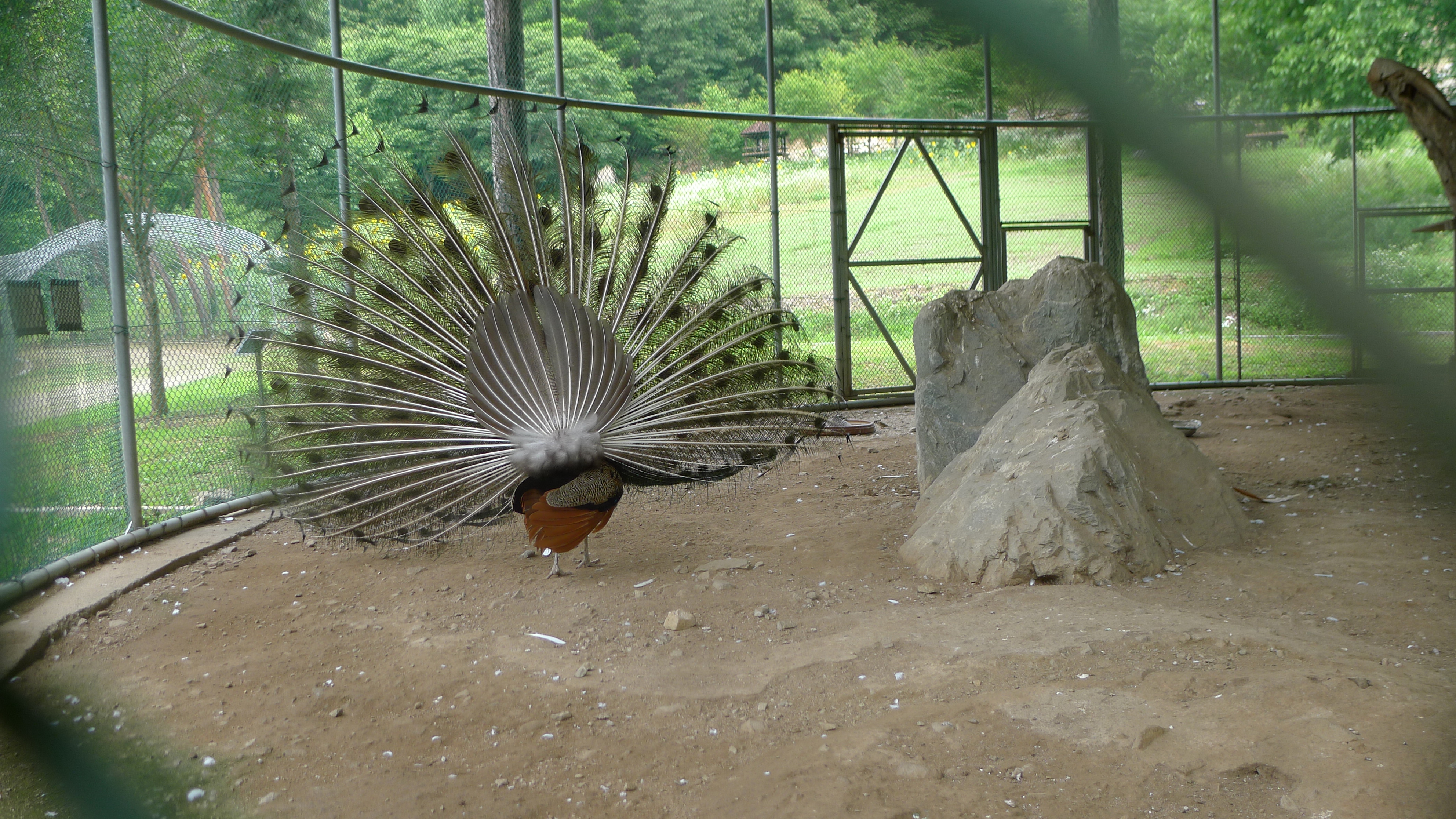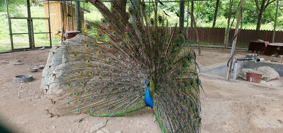 구절산 임도산행하려고 조류사육장 근처에서 김밥먹고 차가지러간 신랑 기다리다보니 공작새가 날개를...
