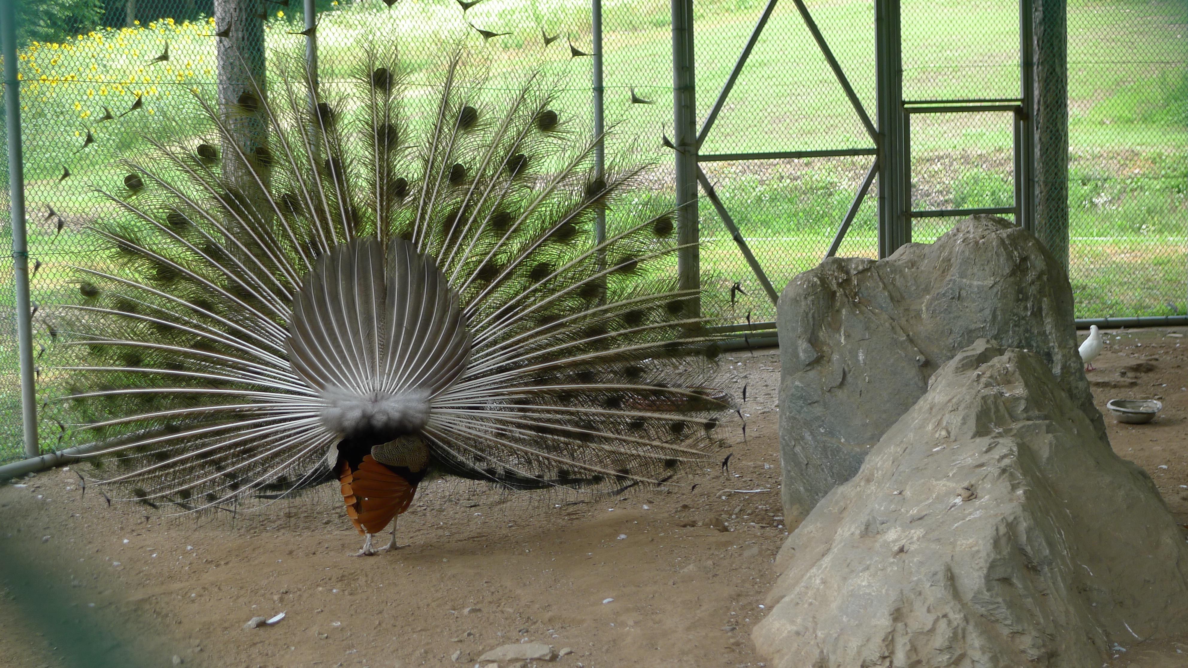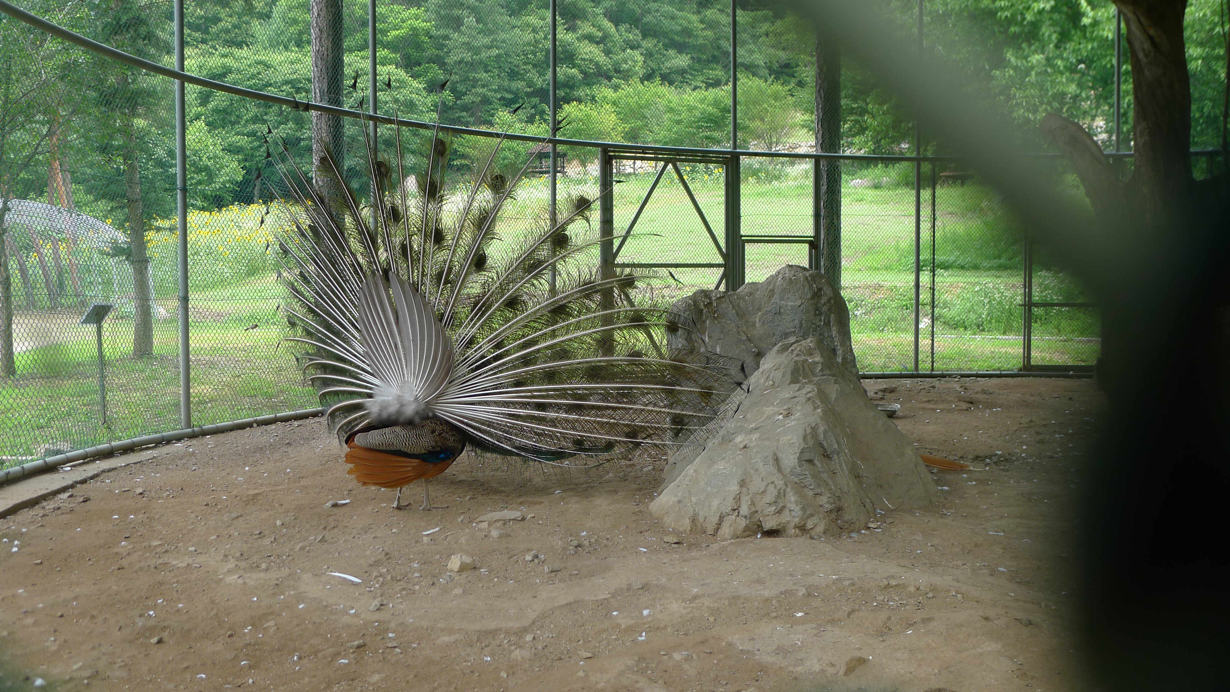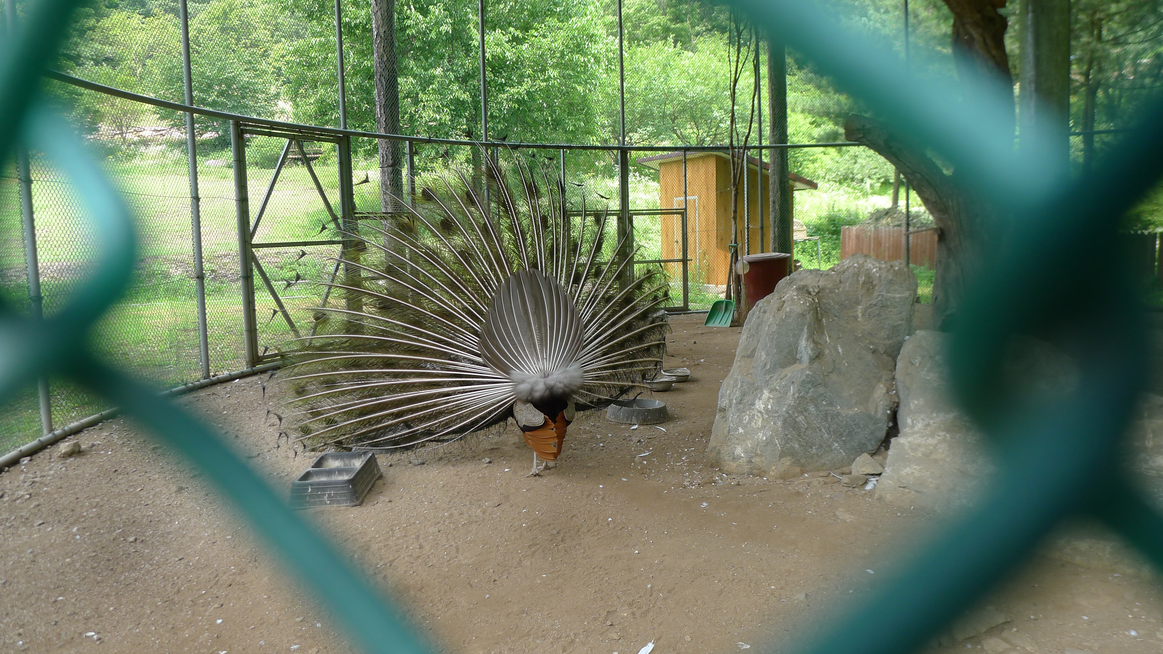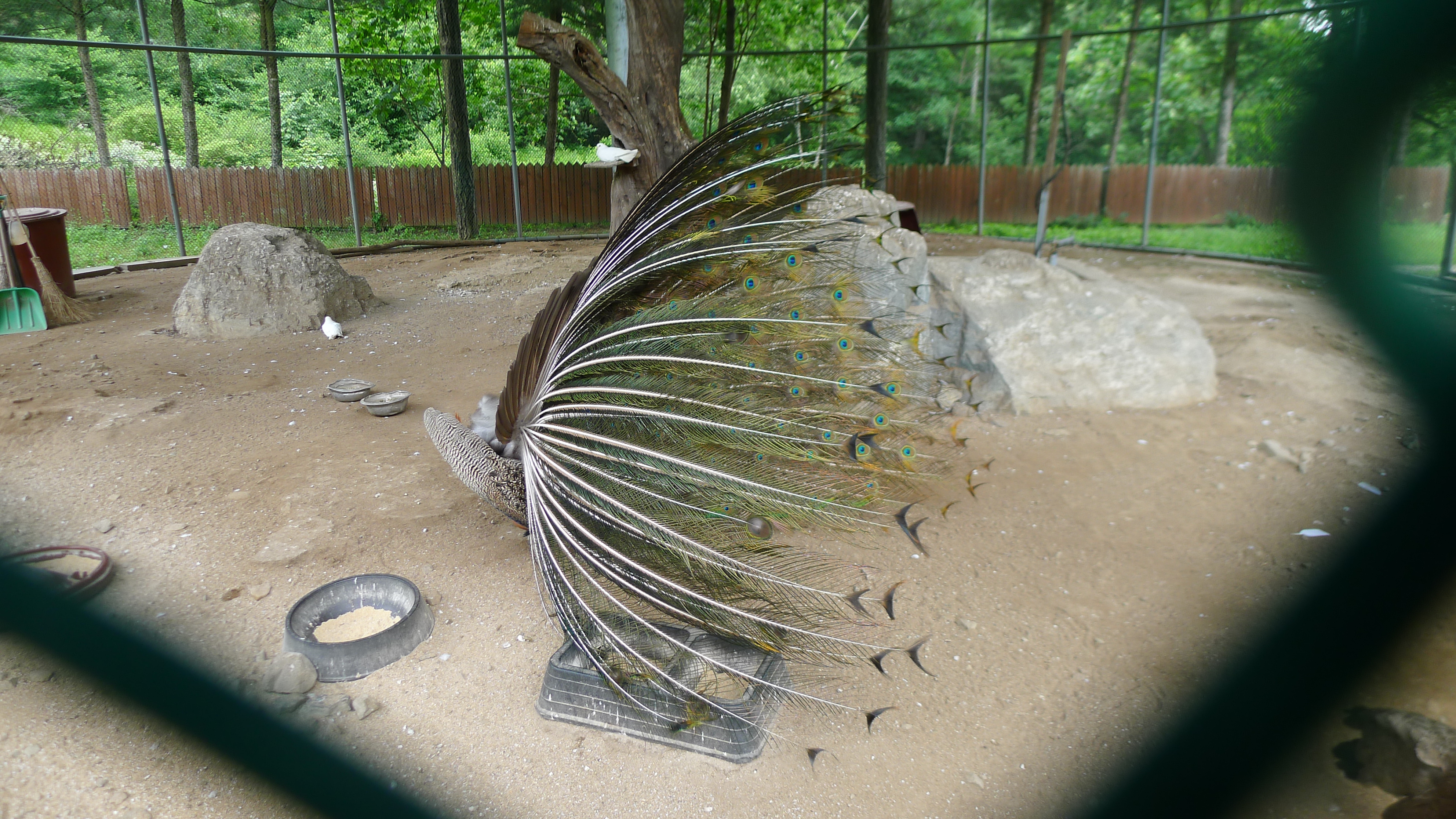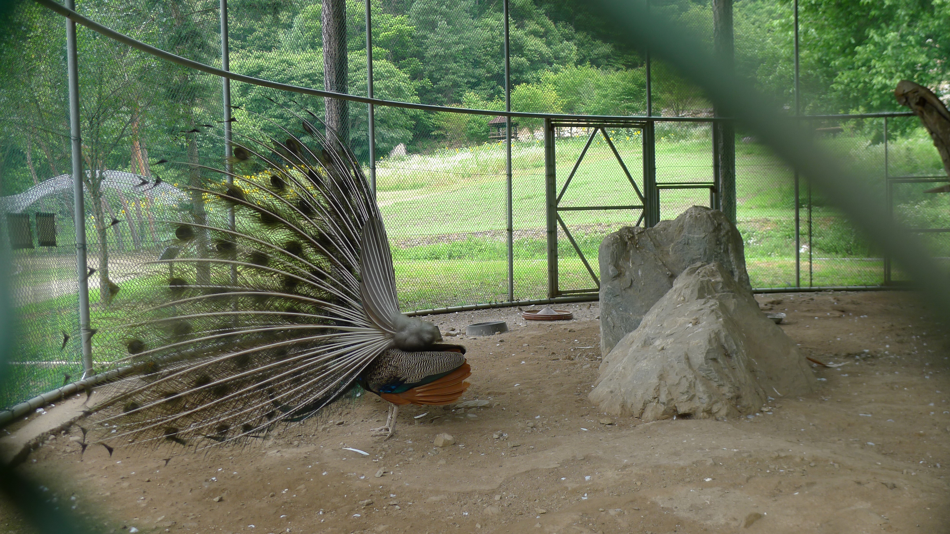 구절산 임도산행하려고 조류사육장 근처에서 김밥먹고 차가지러간 신랑 기다리다보니 공작새가 날개를...