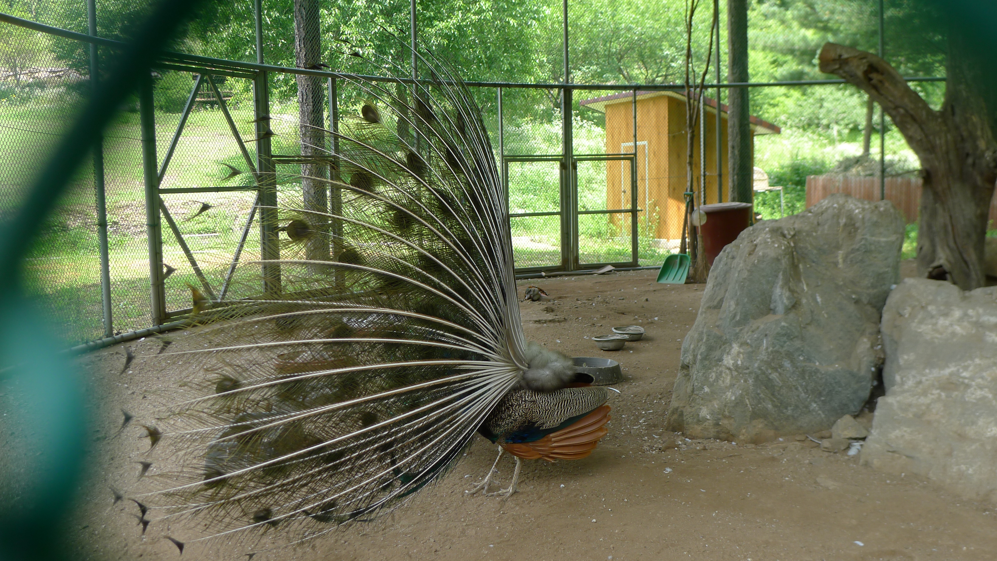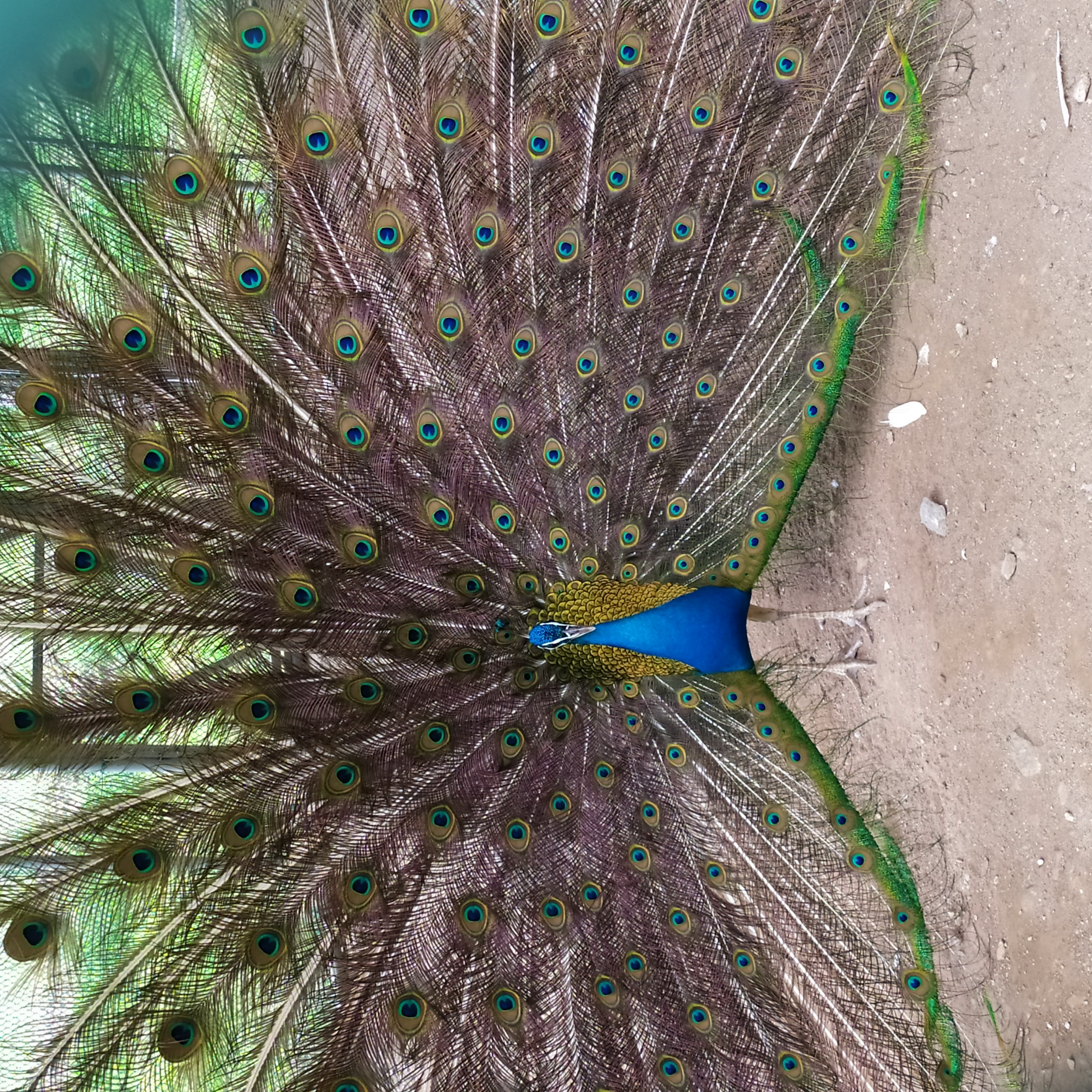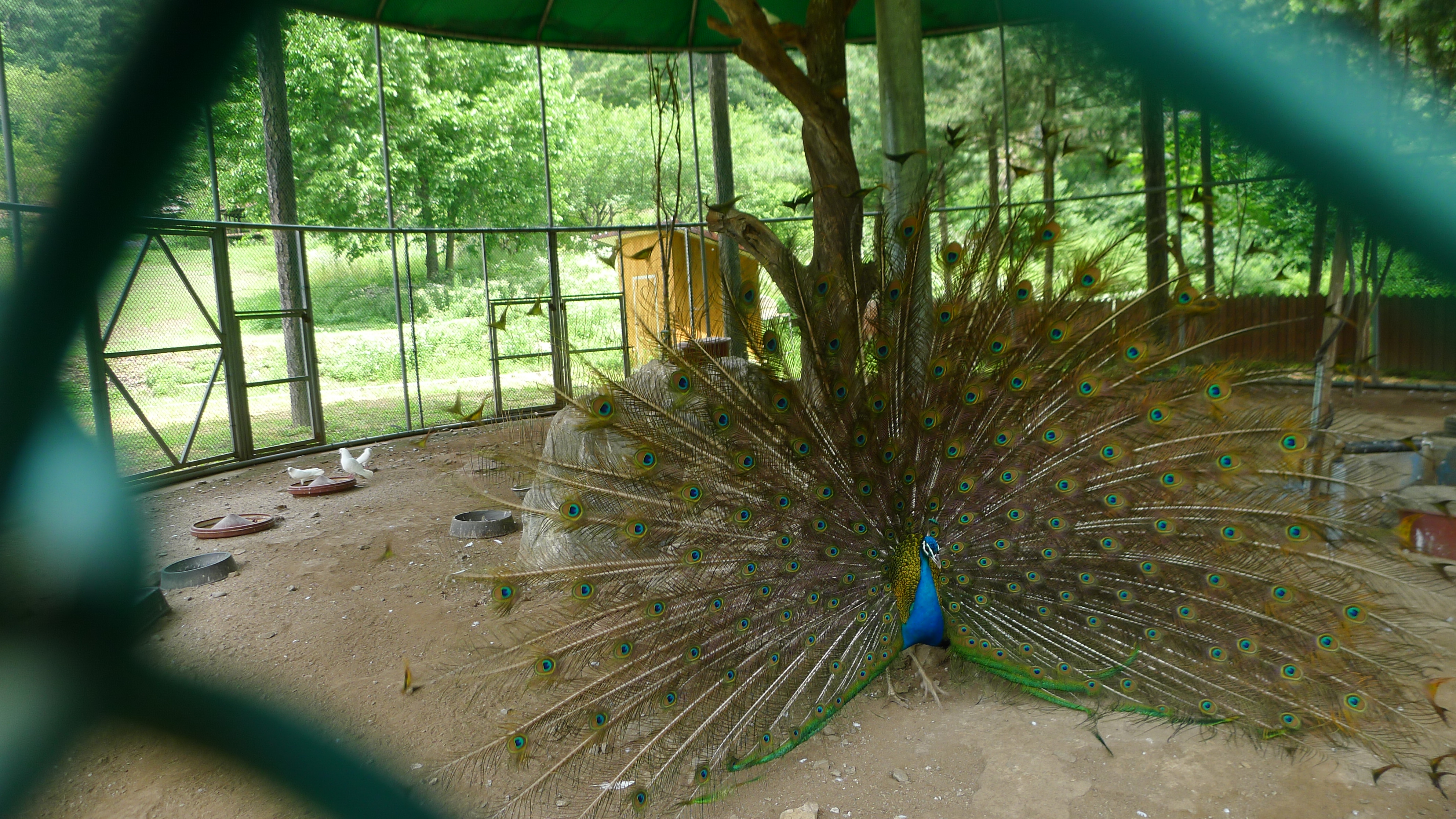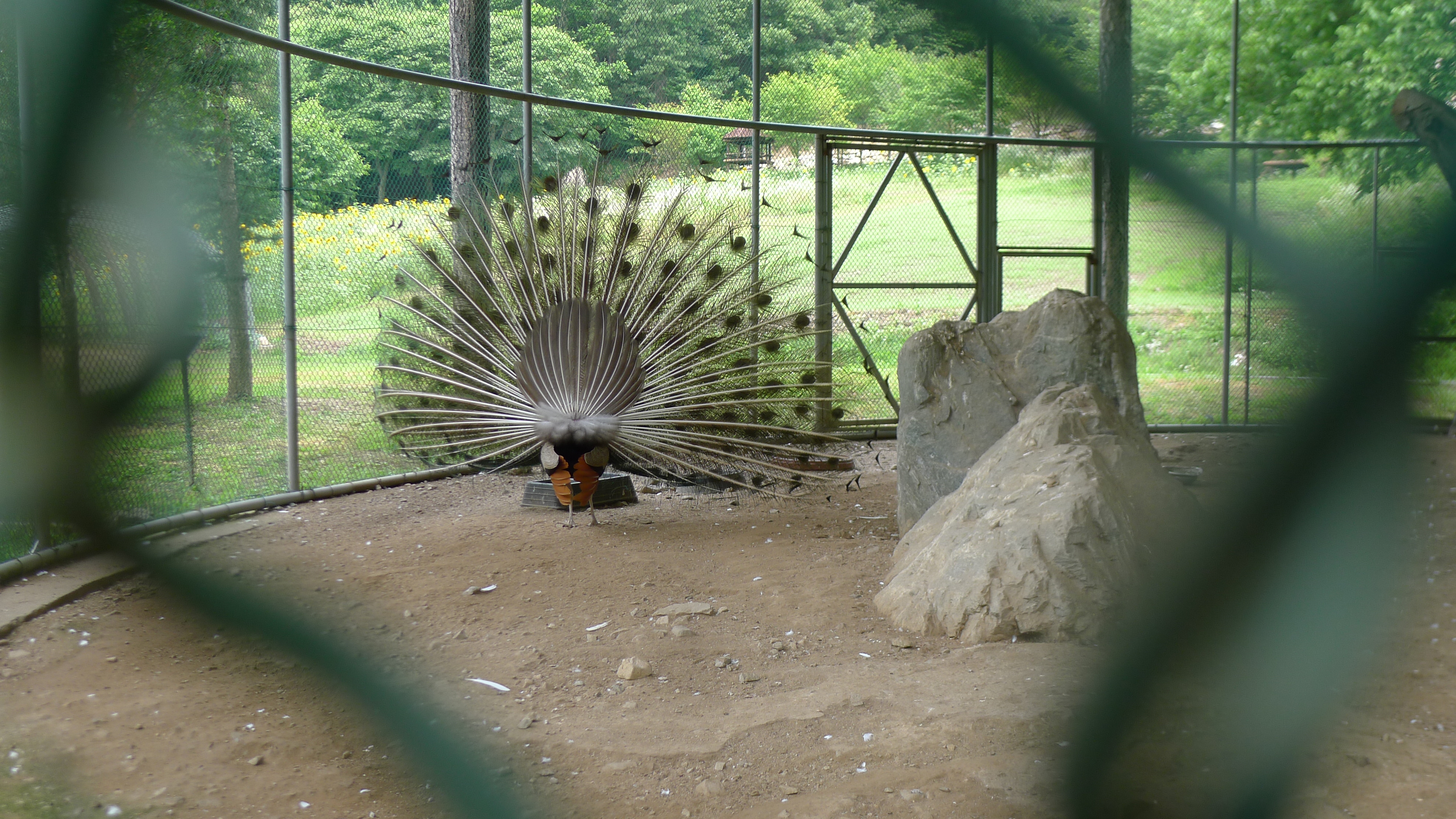 구절산 임도산행하려고 조류사육장 근처에서 김밥먹고 차가지러간 신랑 기다리다보니 공작새가 날개를...