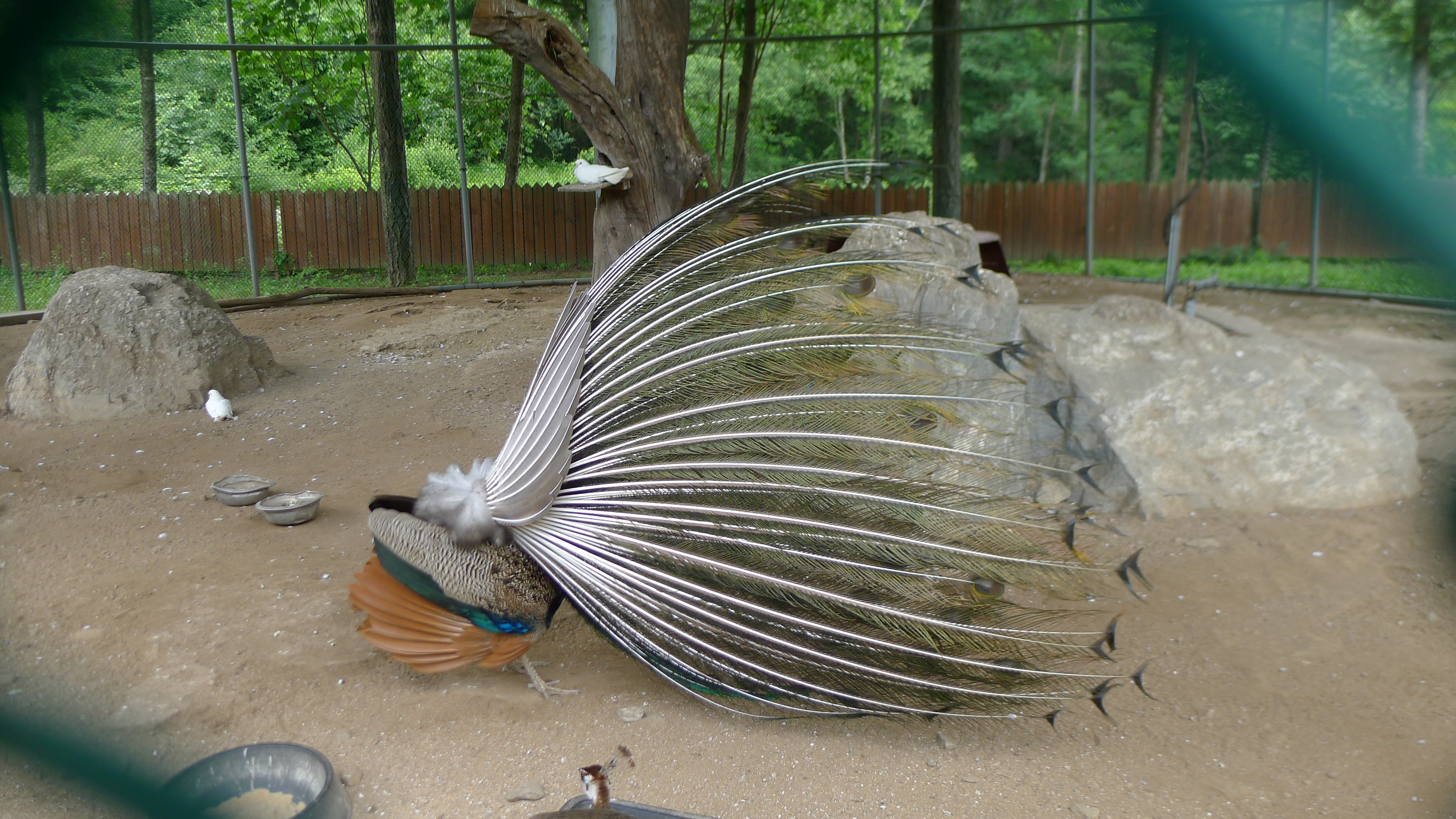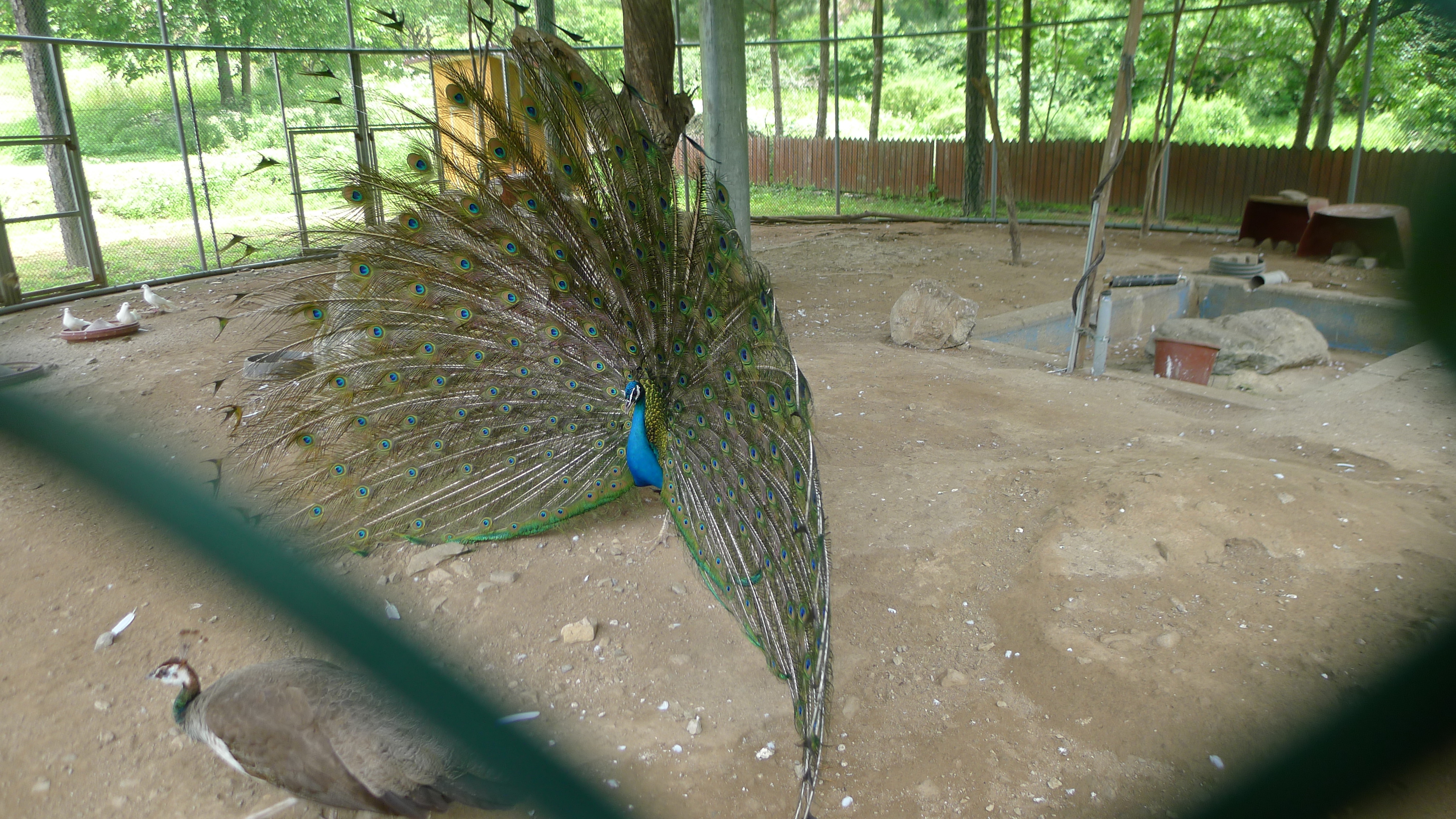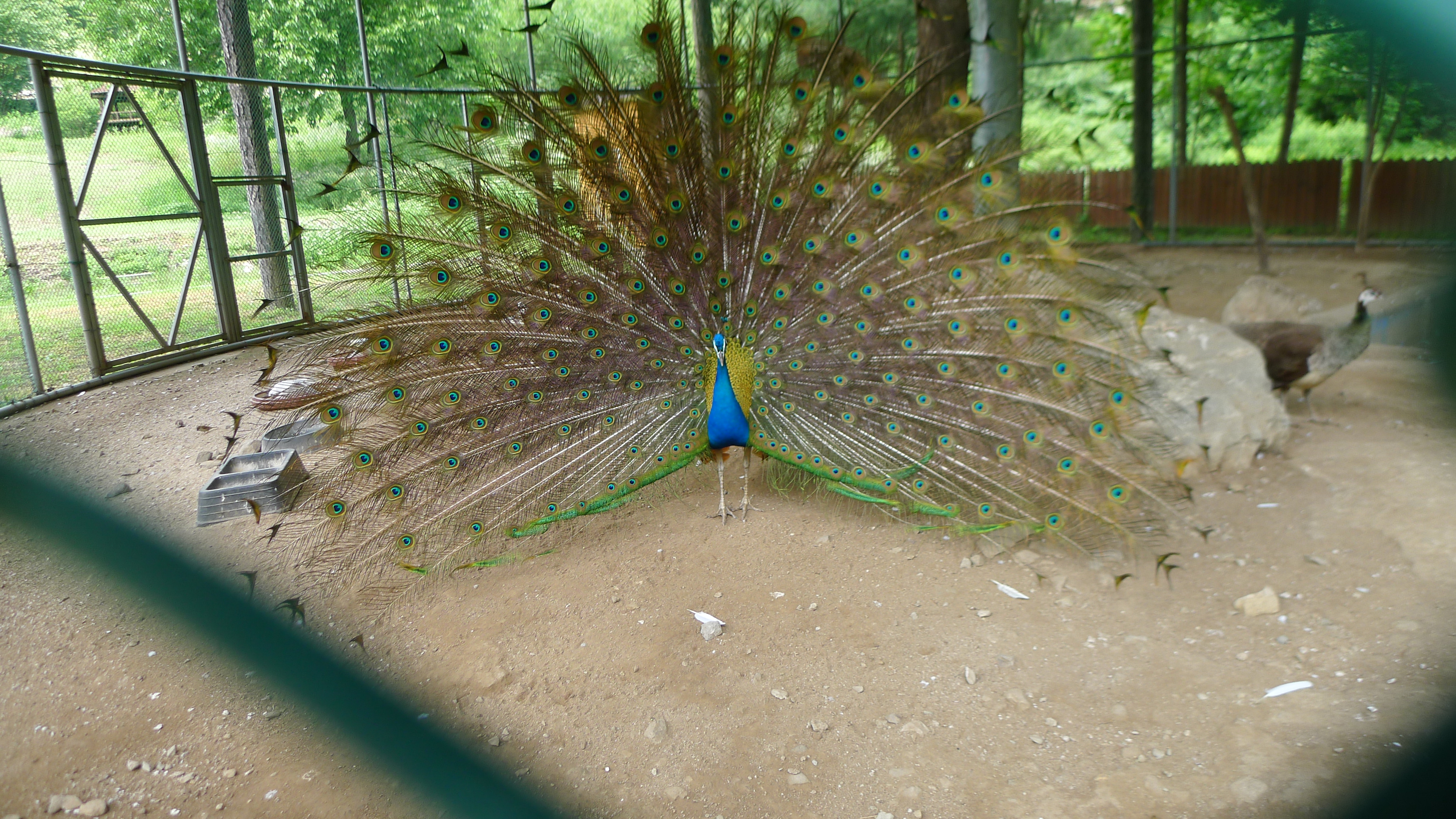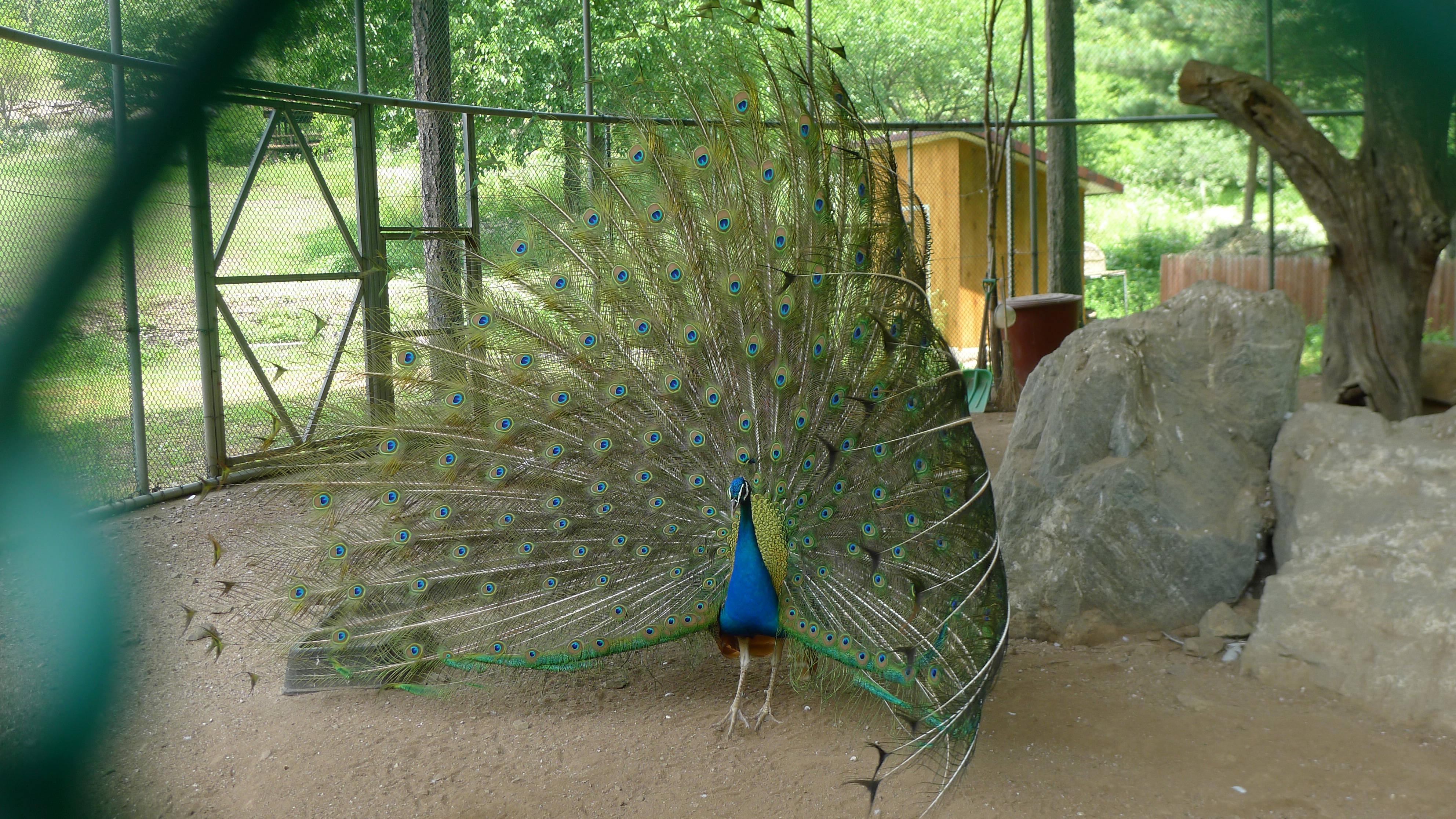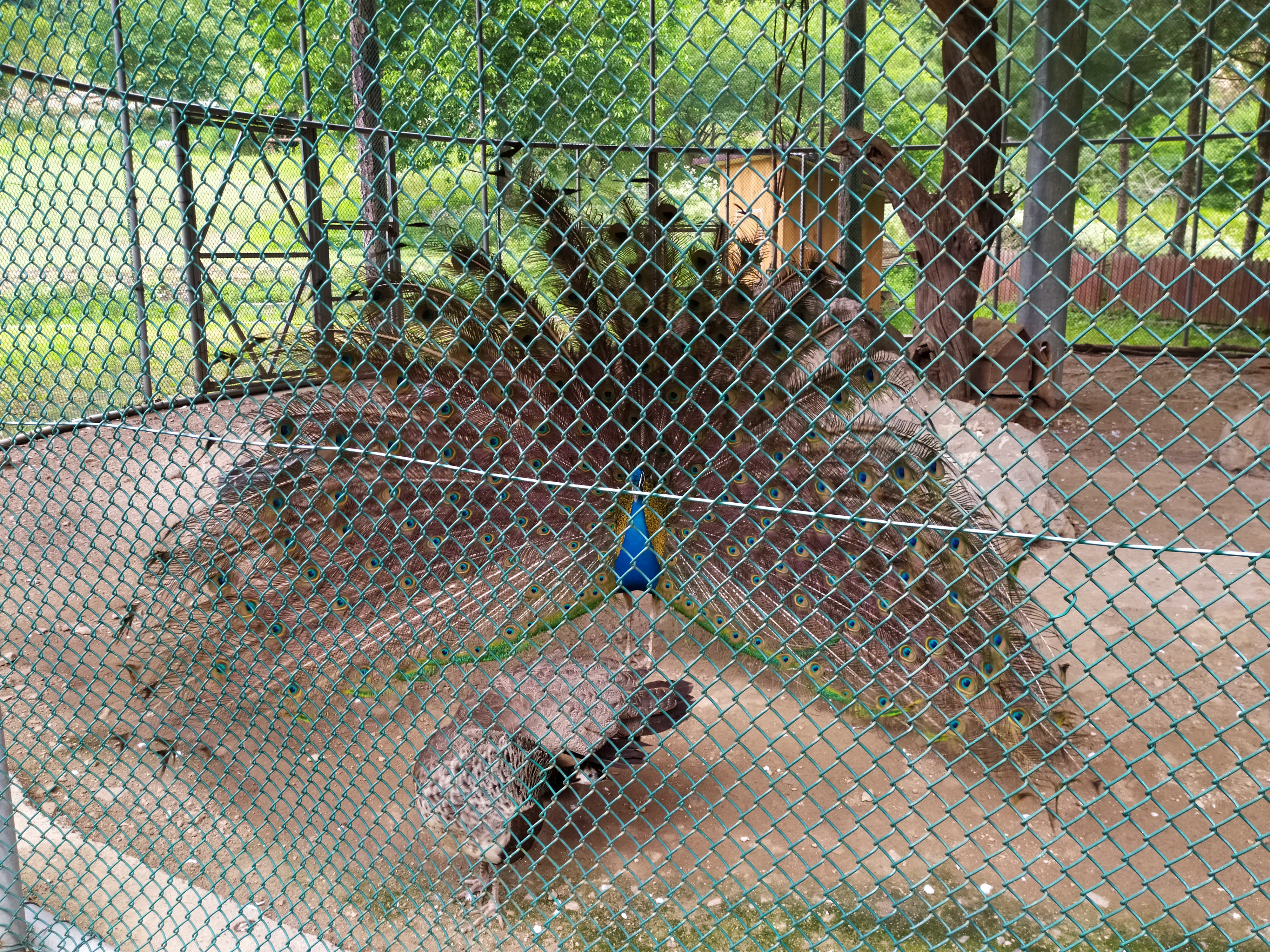 구절산 임도산행하려고 조류사육장 근처에서 김밥먹고 차가지러간 신랑 기다리다보니 공작새가 날개를...