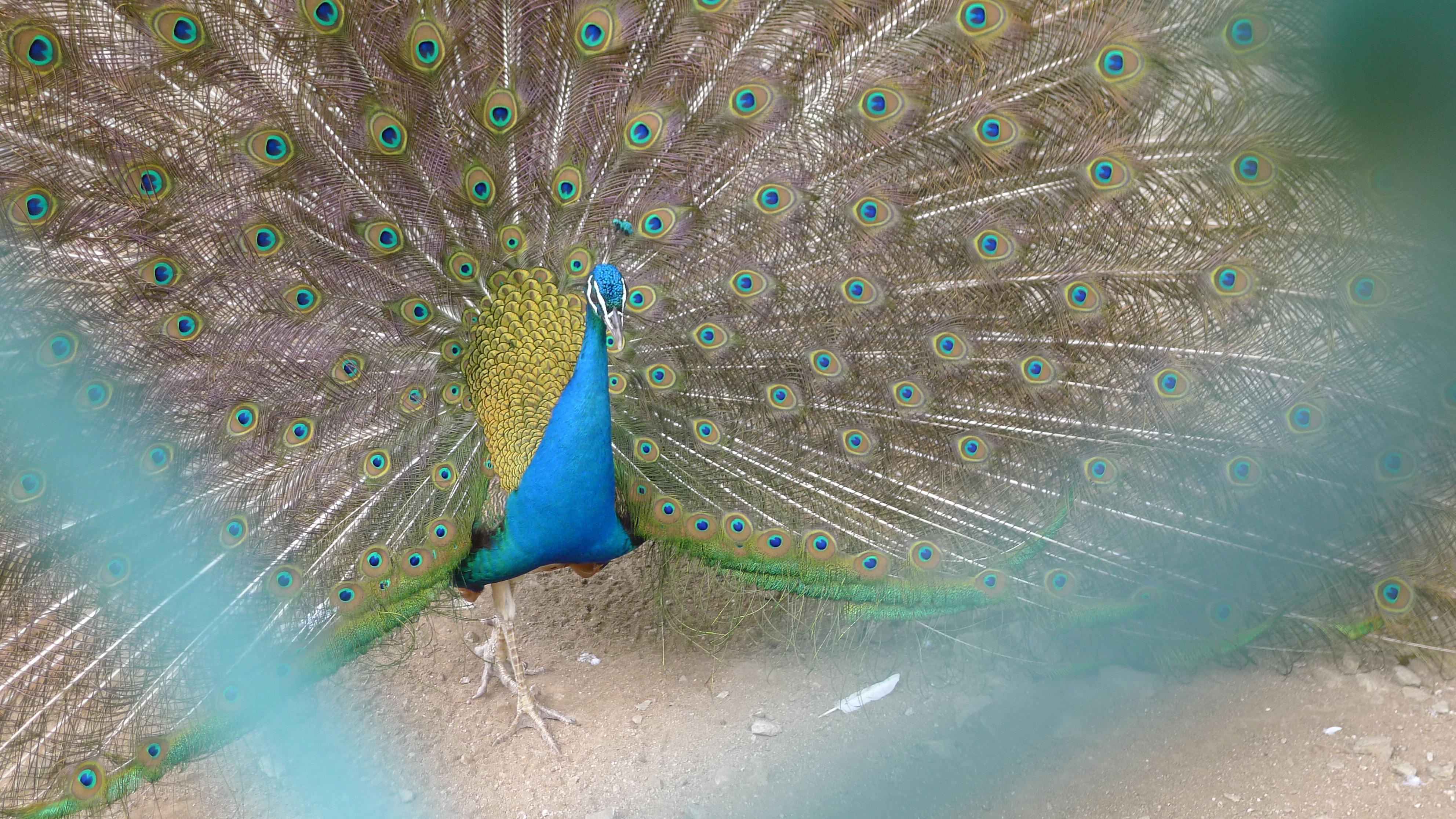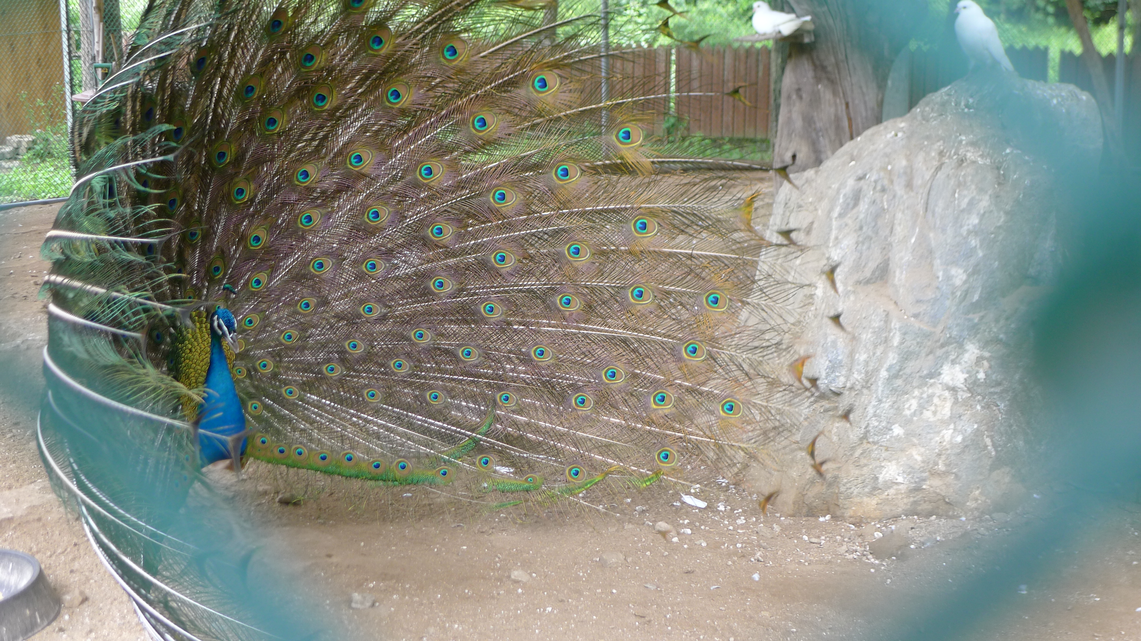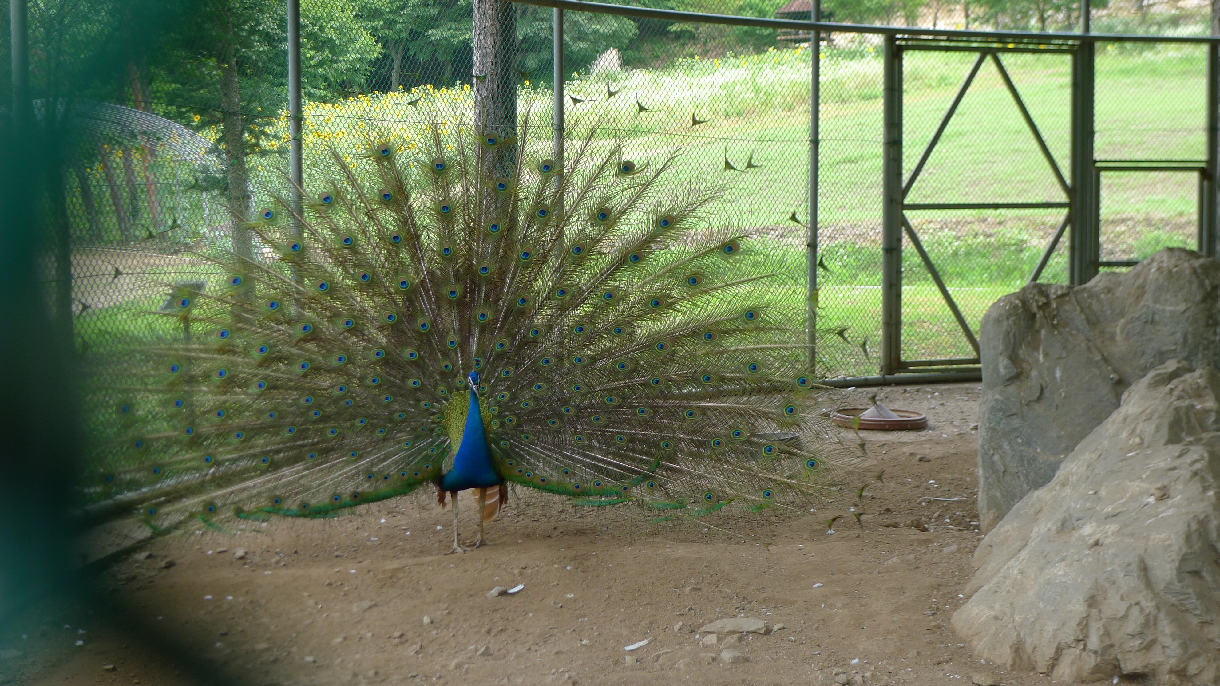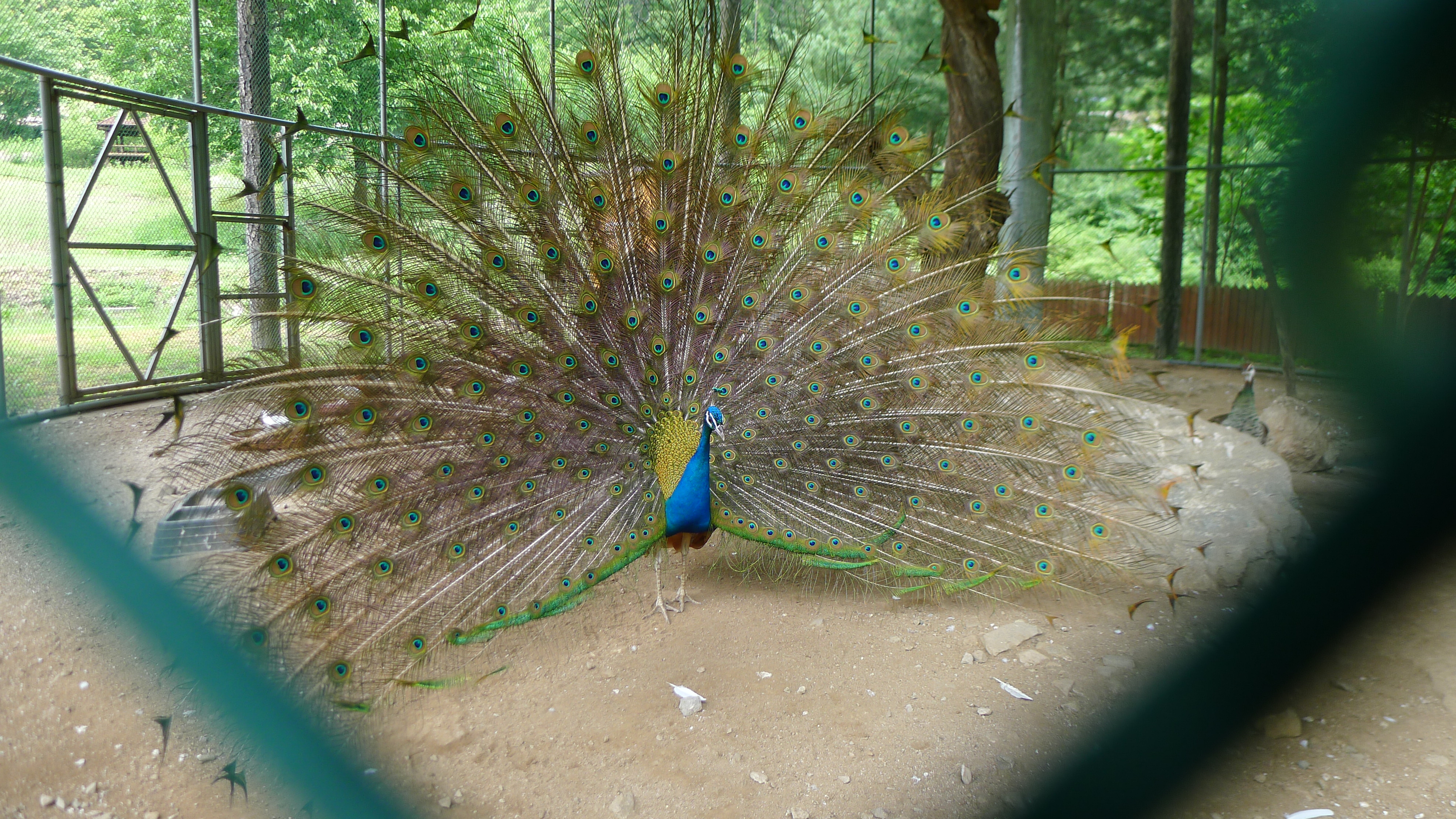 구절산 임도산행하려고 조류사육장 근처에서 김밥먹고 차가지러간 신랑 기다리다보니 공작새가 날개를...