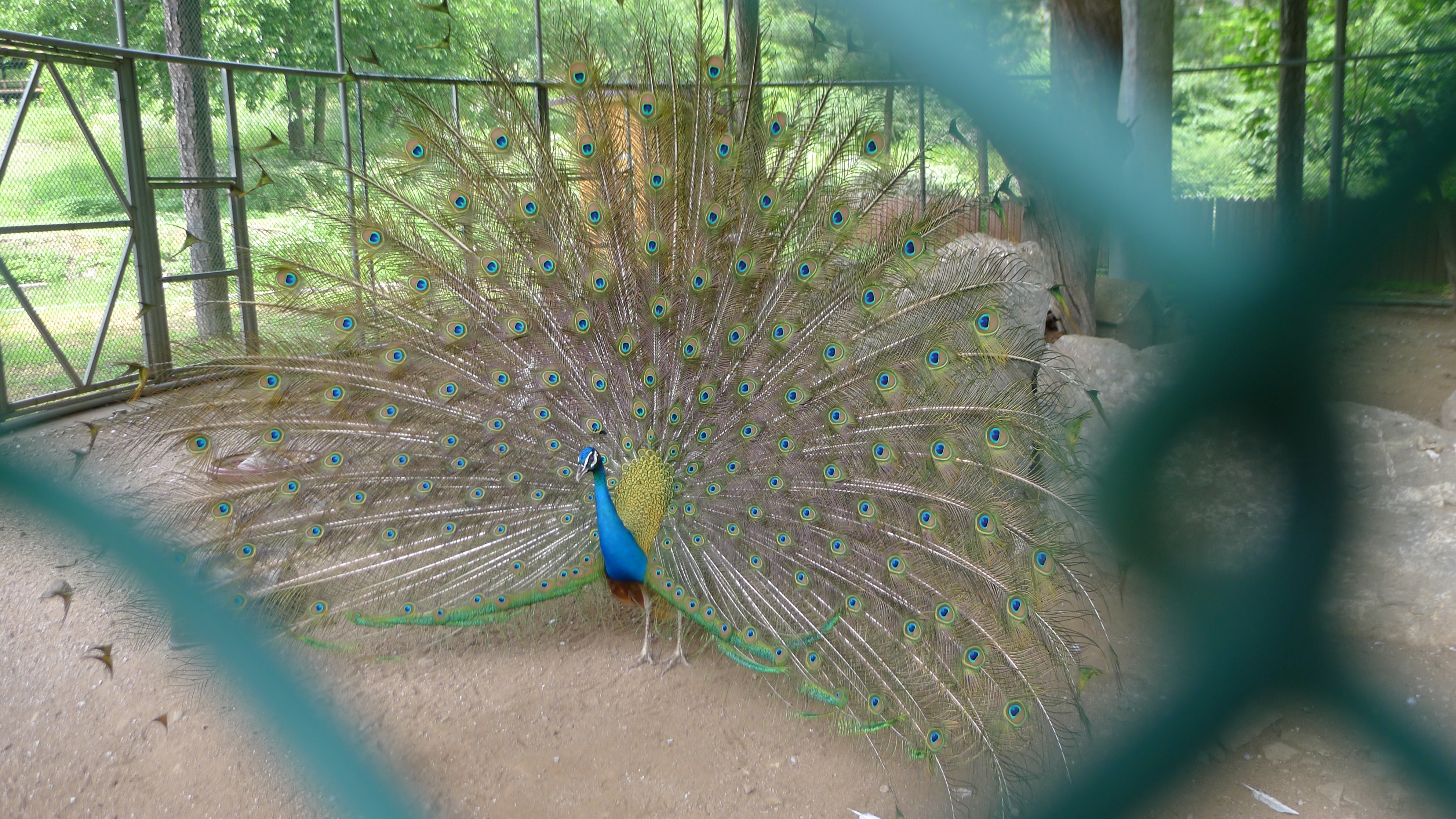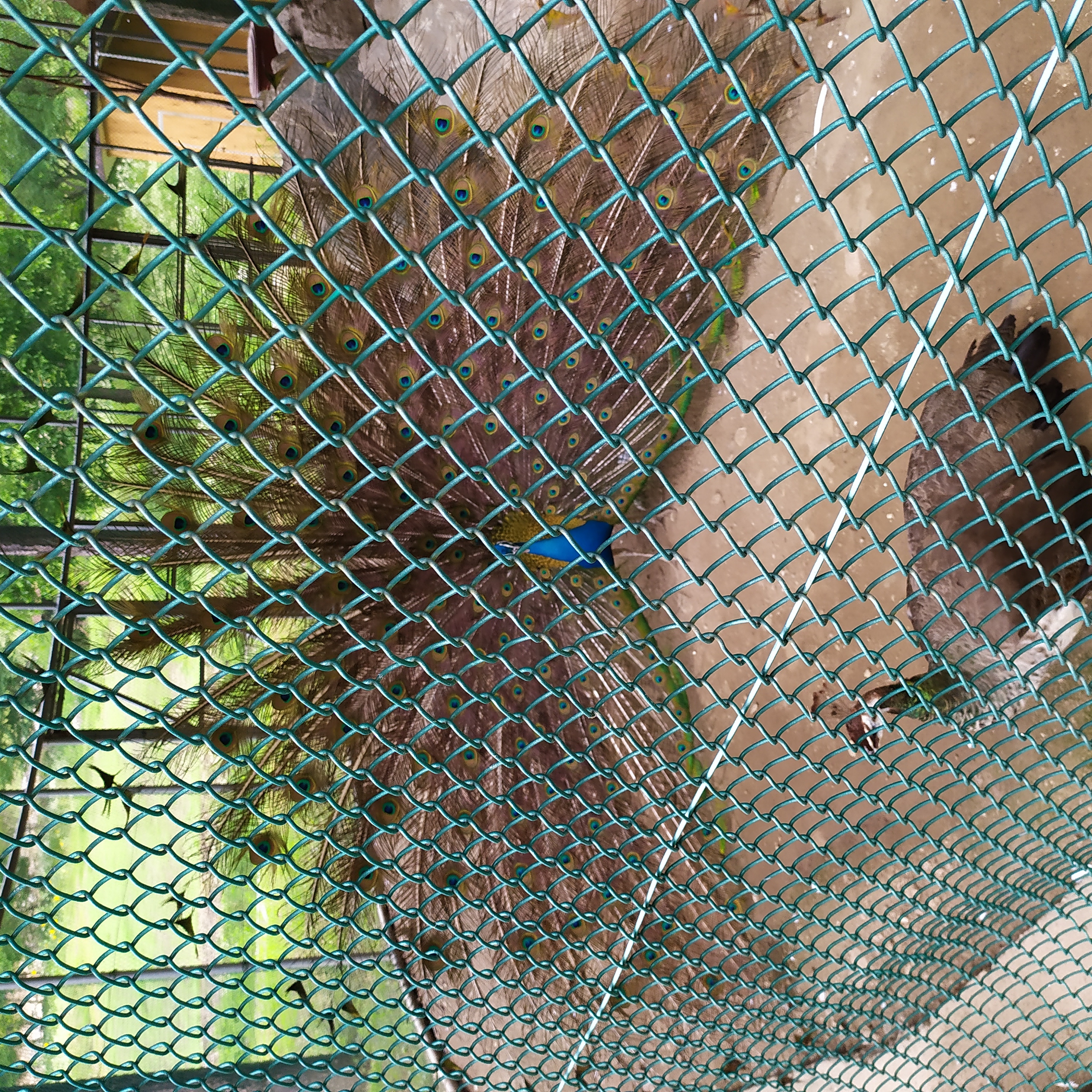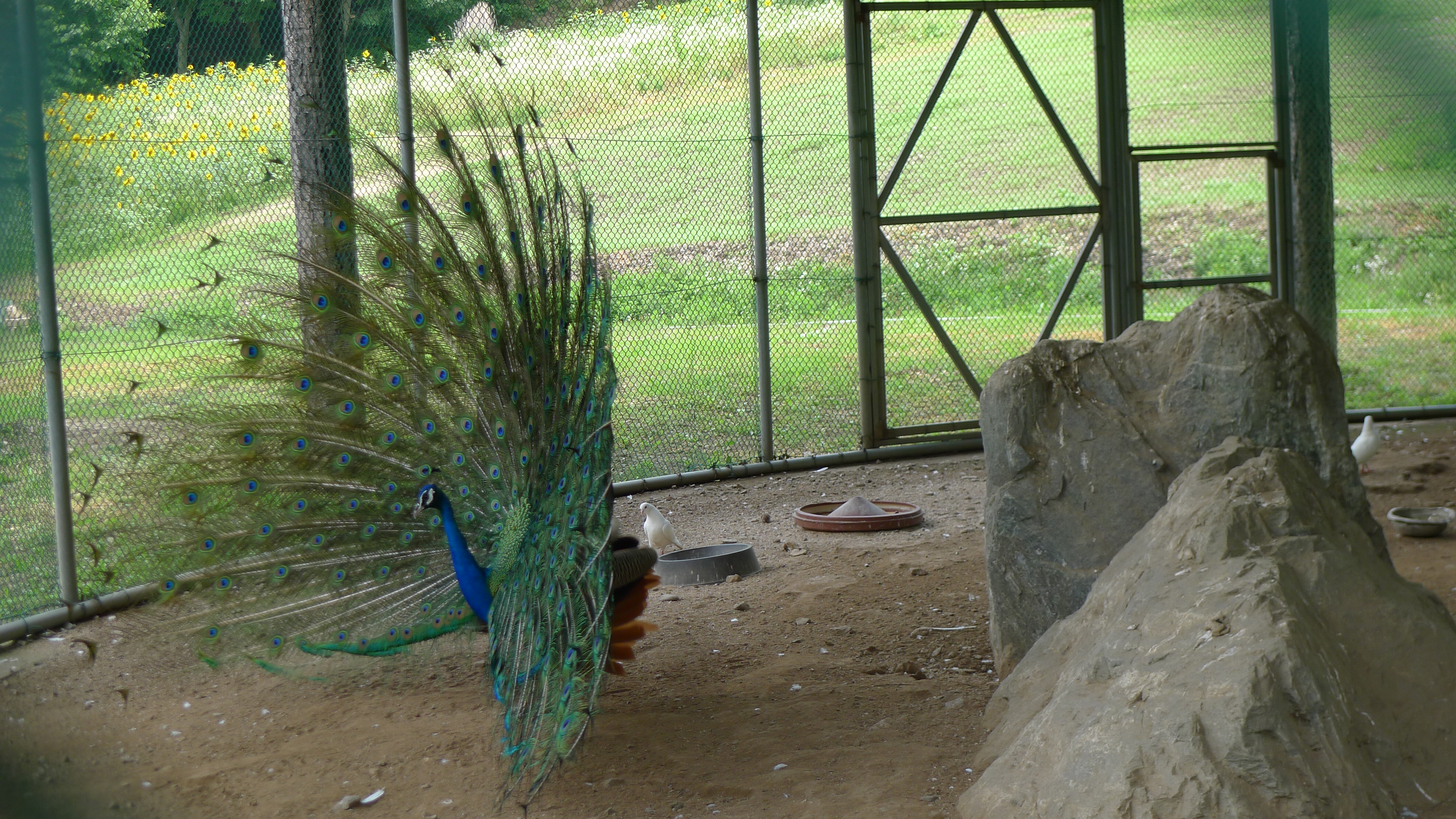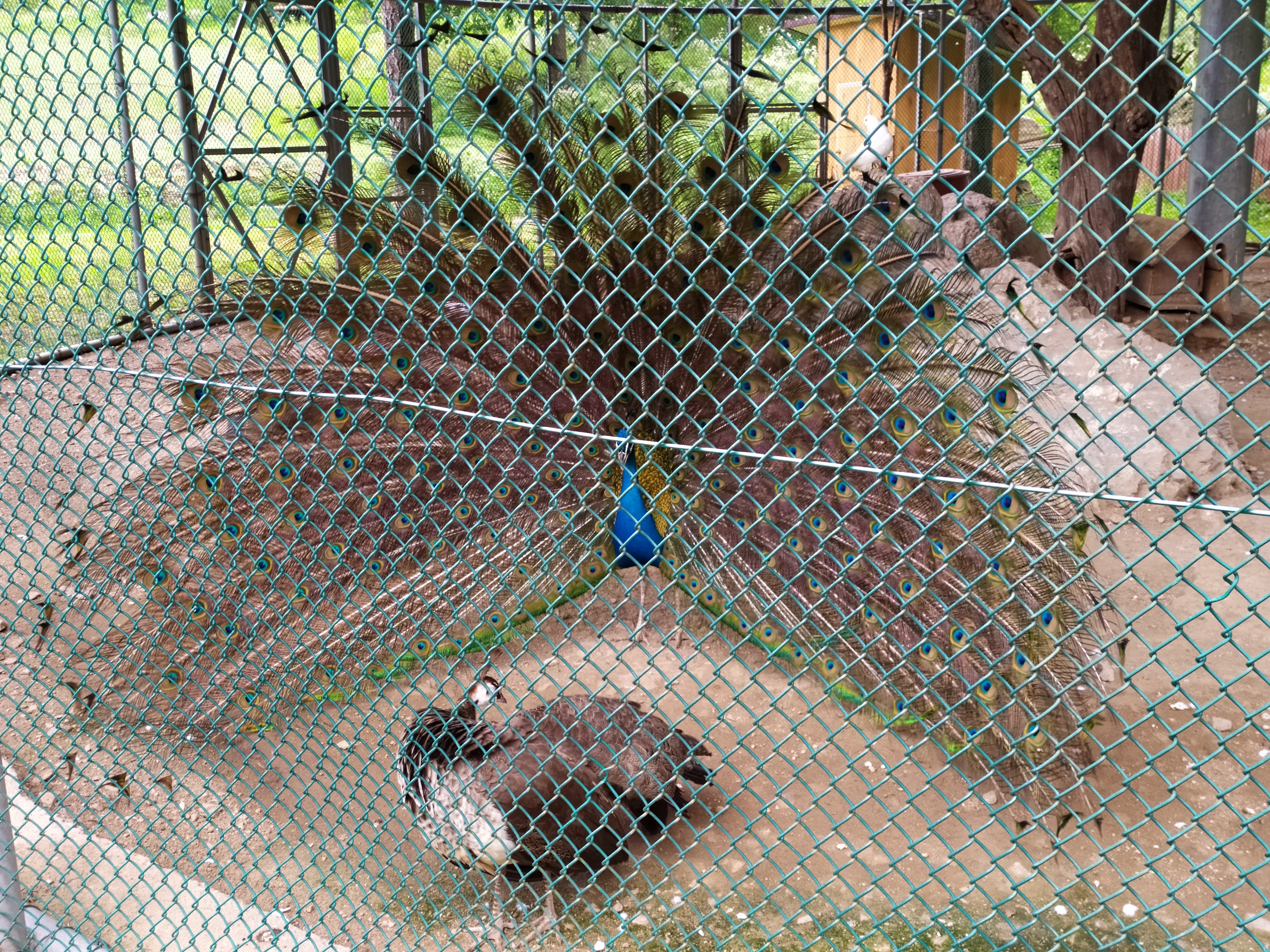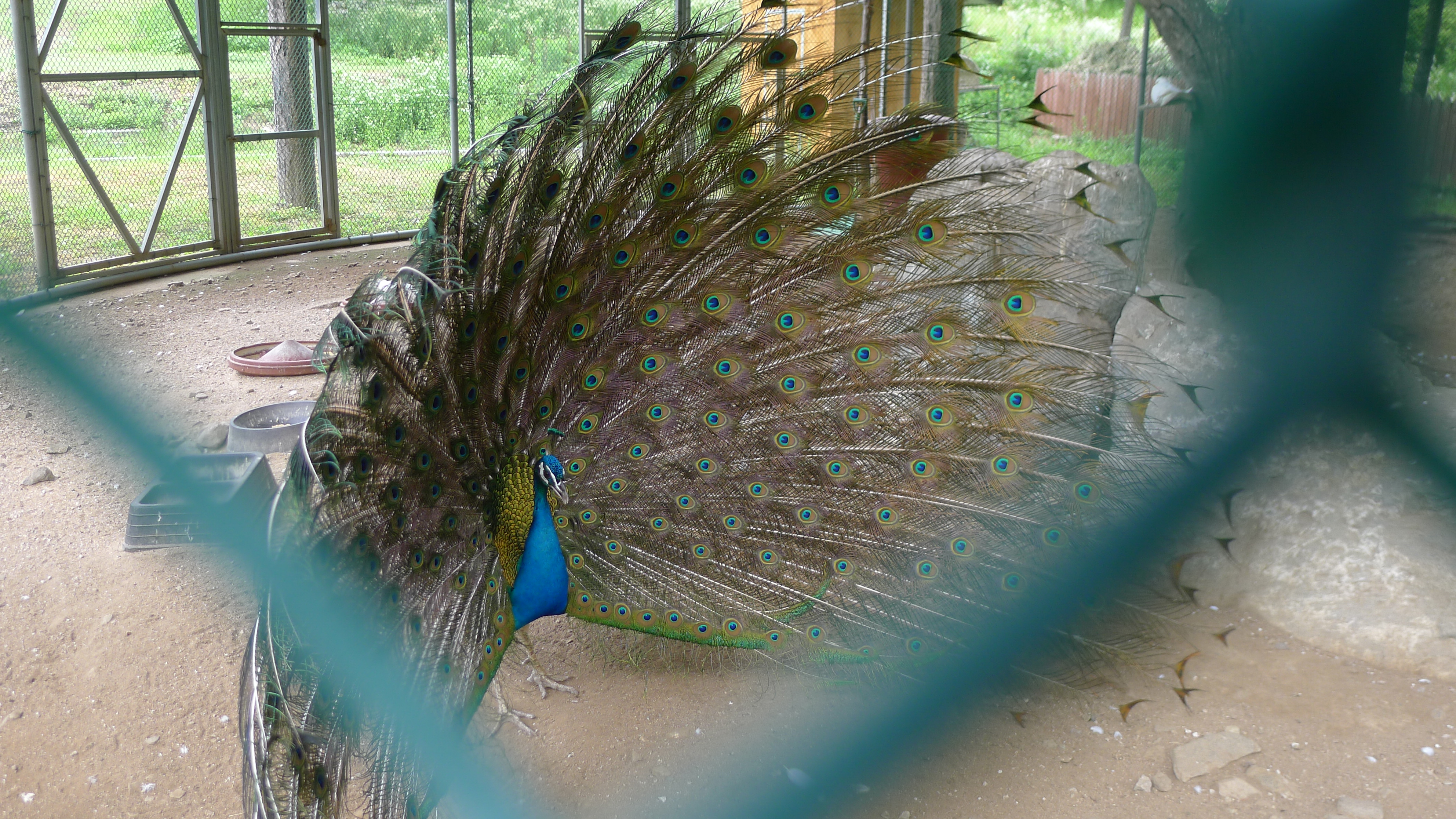 구절산 임도산행하려고 조류사육장 근처에서 김밥먹고 차가지러간 신랑 기다리다보니 공작새가 날개를...