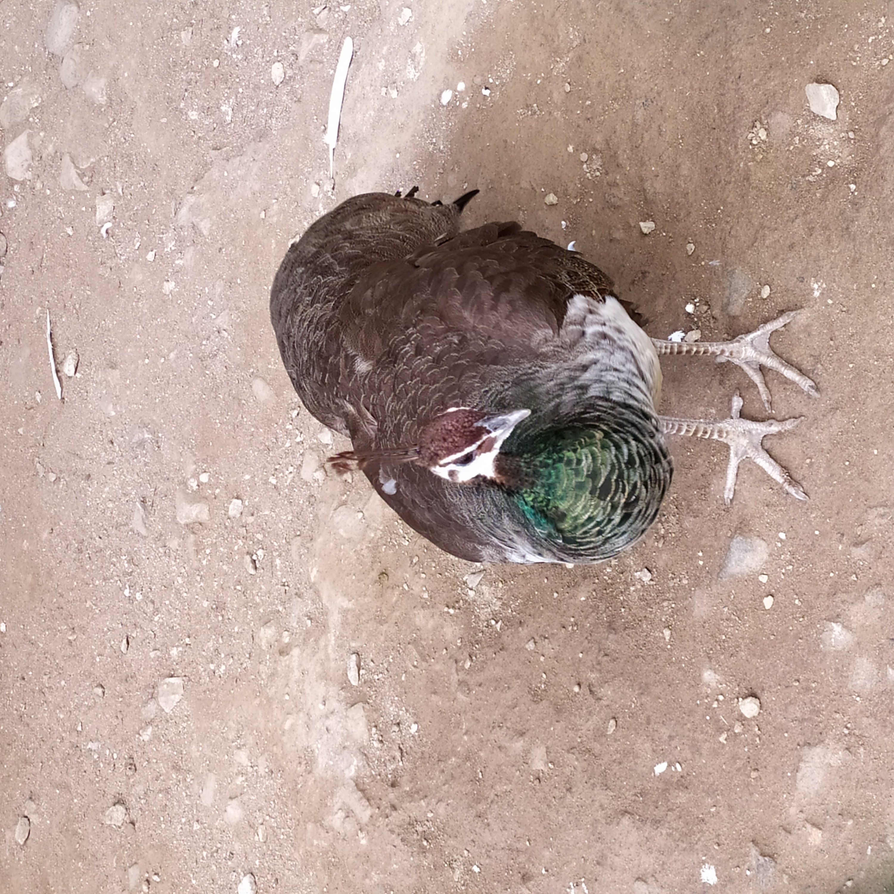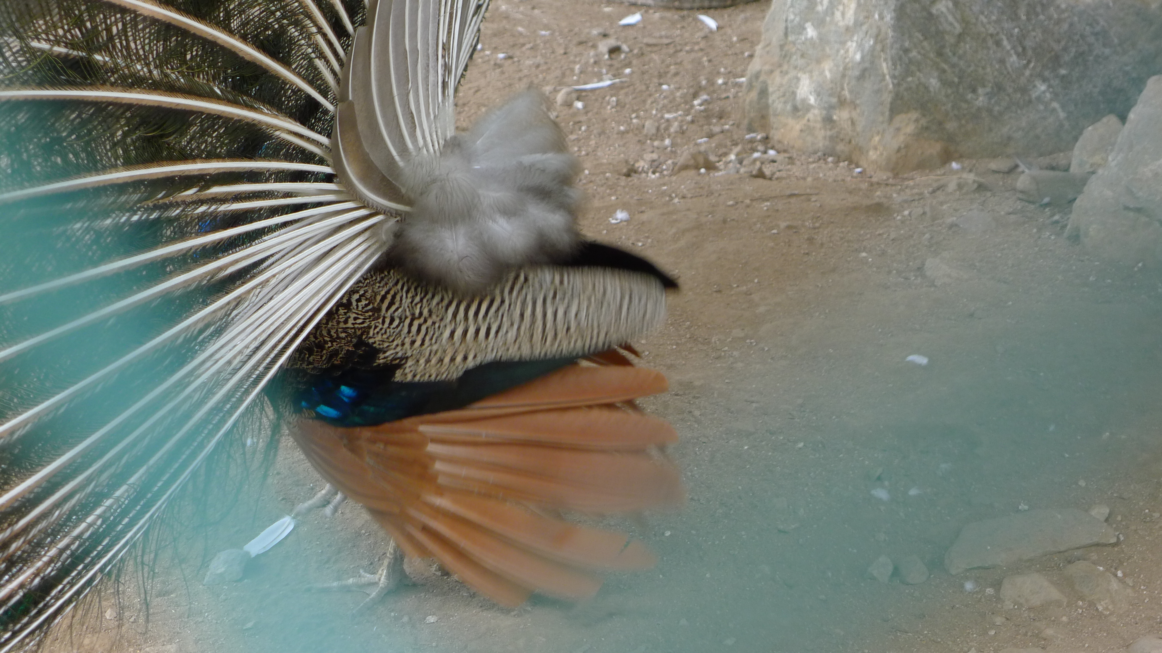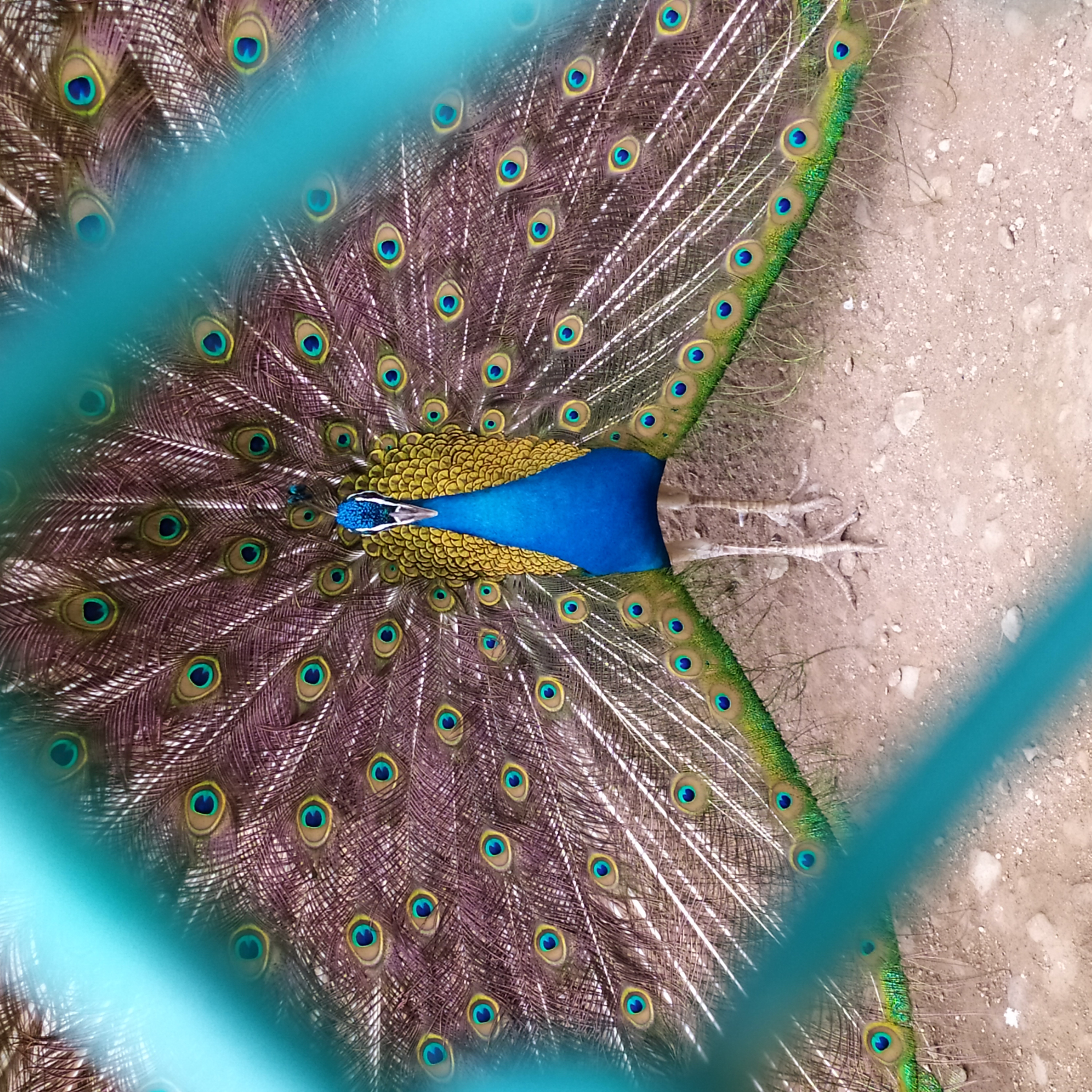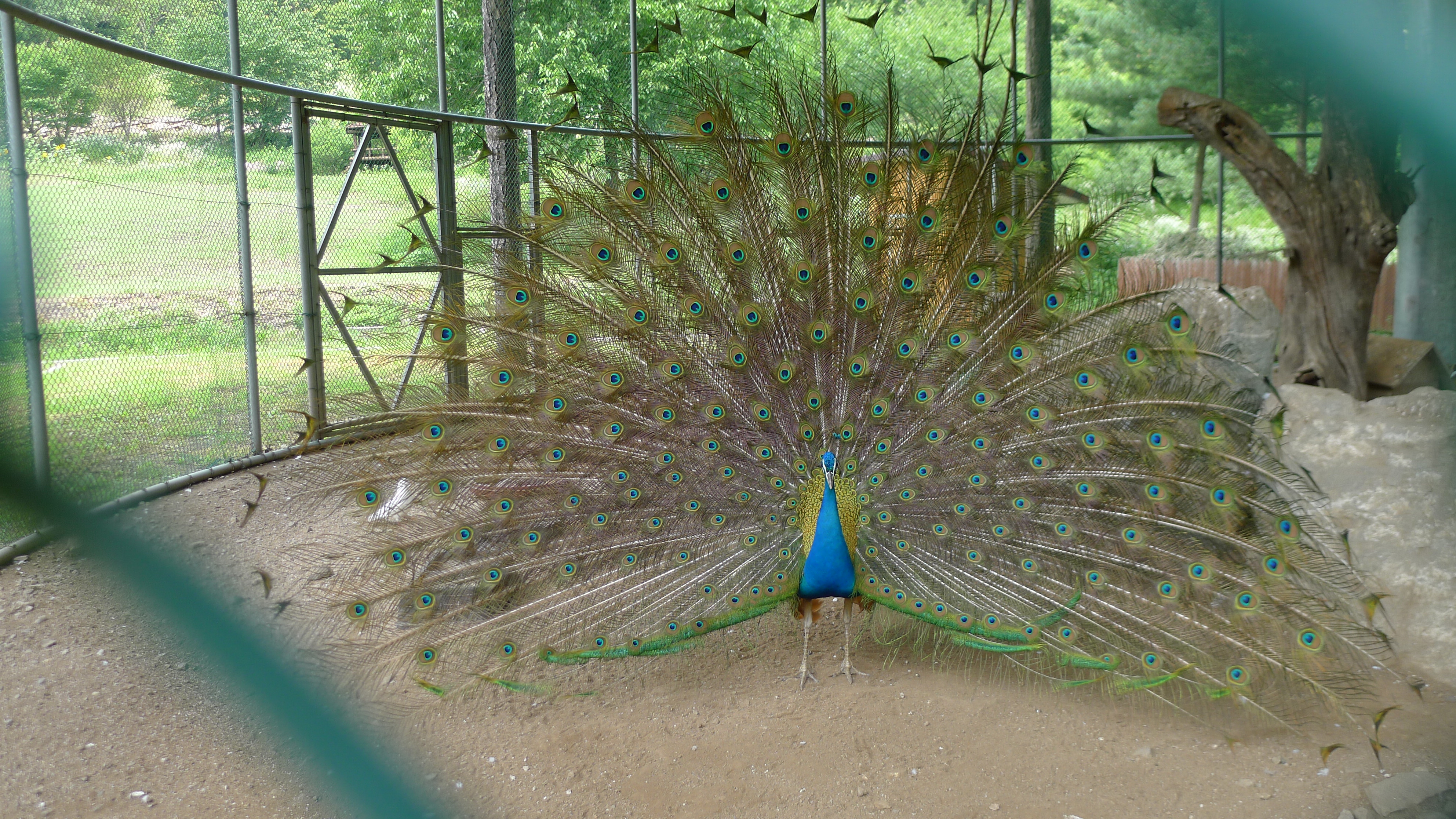 구절산 임도산행하려고 조류사육장 근처에서 김밥먹고 차가지러간 신랑 기다리다보니 공작새가 날개를...