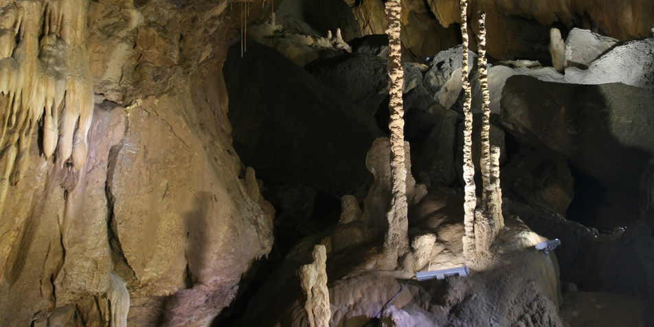 적은양의 물이 일정한 속도로 떨어지면서 물방울에 들어있는 석회물질이 바닥에 쌓여 원추형으로 가늘고 길게 자라난, 지름 5cm, 높이3.5m의 세계적 규모의 막대형석순.
