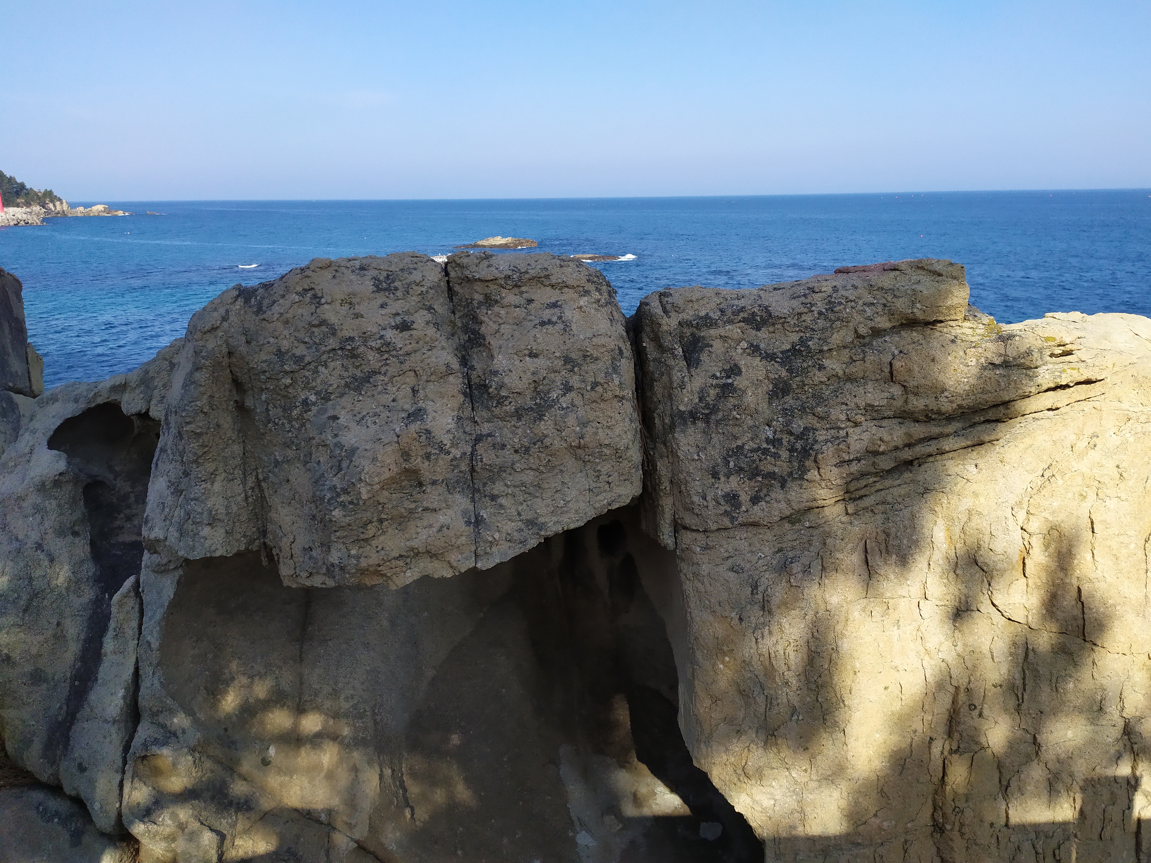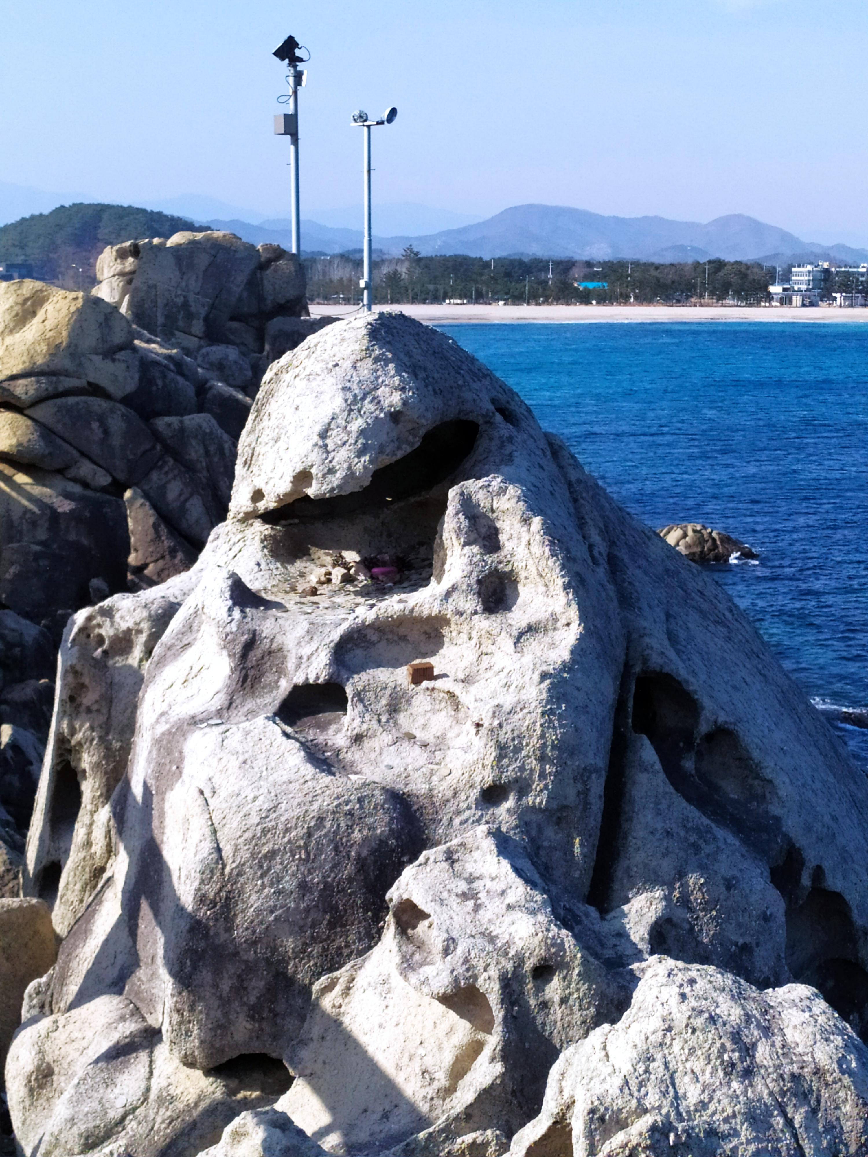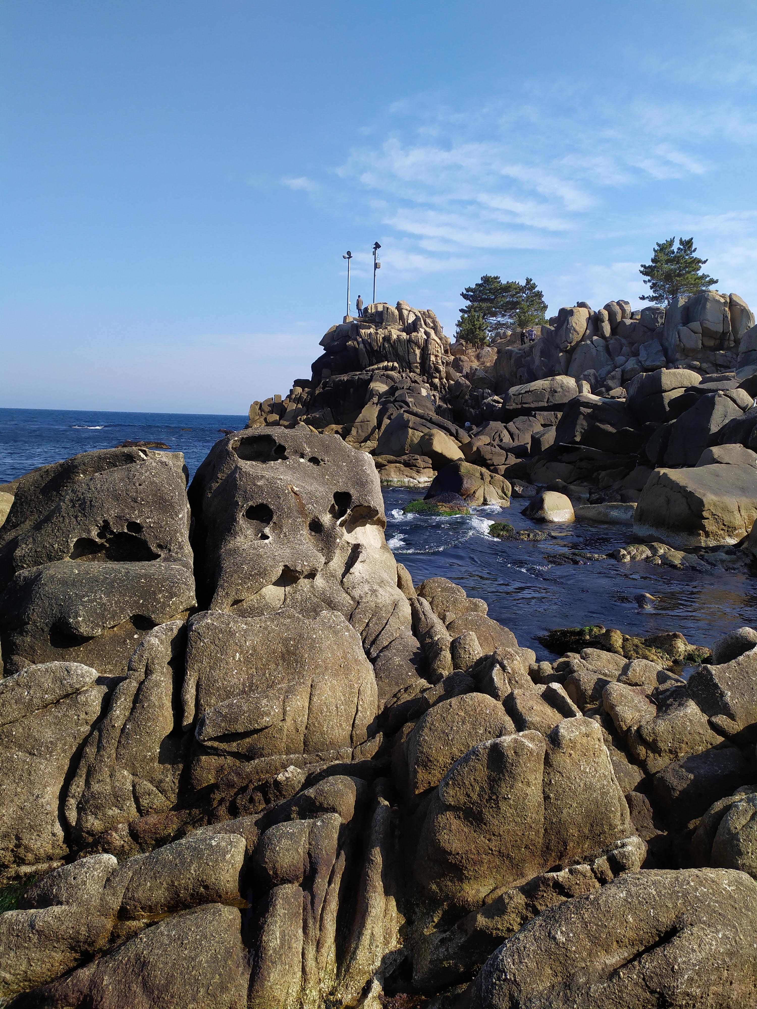 고성군 죽왕면 문암2리 항구 뒤편 해안에는 하얀 파도가 기묘한 바위에 부서지는 아름다운 풍경이 있다.