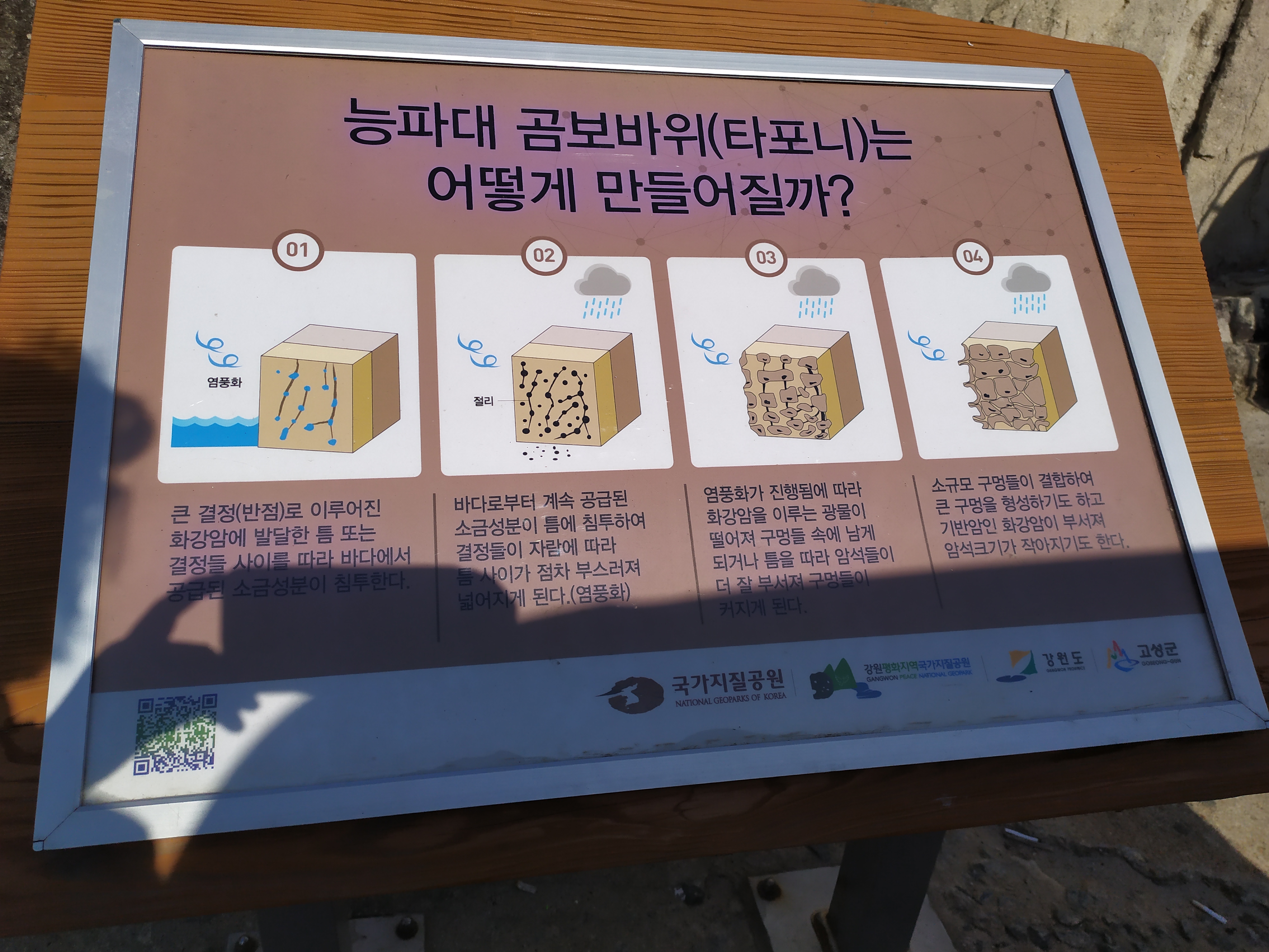 고성에는 능파대를 비롯해 진부령, 화진포, 고성 제3기현무암, 송지호 해안 등 5곳의 지질명소가 있다.
